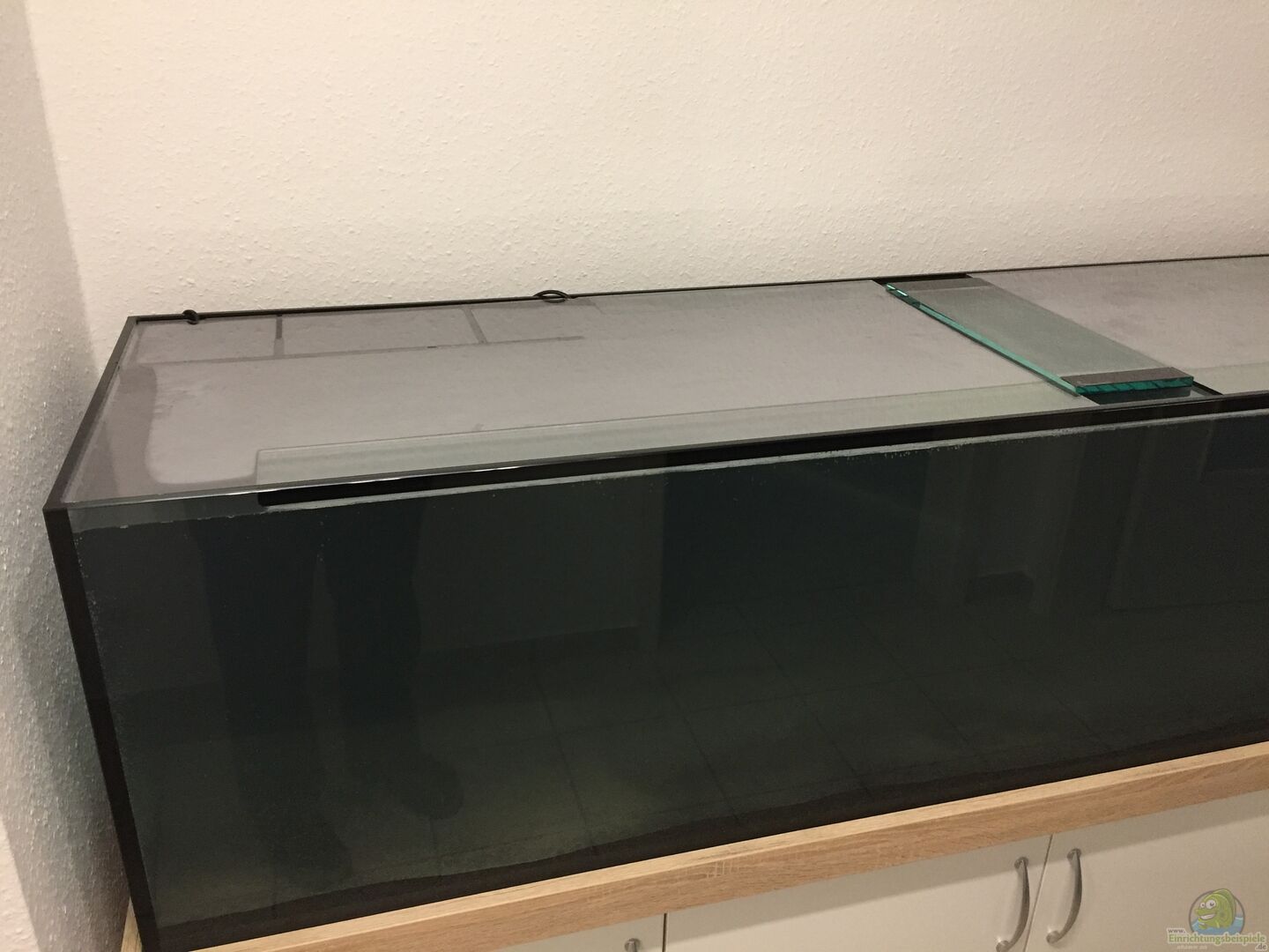 Es handelt sich um ein Standartaquarium mit einem 4-Kammer-Innenfilter im linken hinteren Eck. Das Aquarium ist mit Plexiglasscheiben abgedeckt.