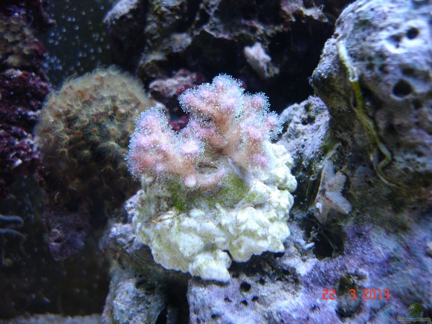 Scheibenanemonen in blau und grün ganz wenige pumpende Xenien - ein Anfängertier das bei uns zu gut wuchs... Krustenanemonen: in hellem Grün Radioactive - hellgrün mit dunkelgrünem Rand Watermelon - rot mit grünem Rand Orange mit grünen Rand div. Corynactis sp. 01 - Korallenanemone - hübsche Tiere die sich eher in der Dunkelheit öffnen und wenig Licht benötigen. 2 Rumphella - Gorgonie 1 Sarcophyton - Pilzlederkorallen und Ableger davon 1 Capnella imbricata - Keniabäumchen 2 [...]