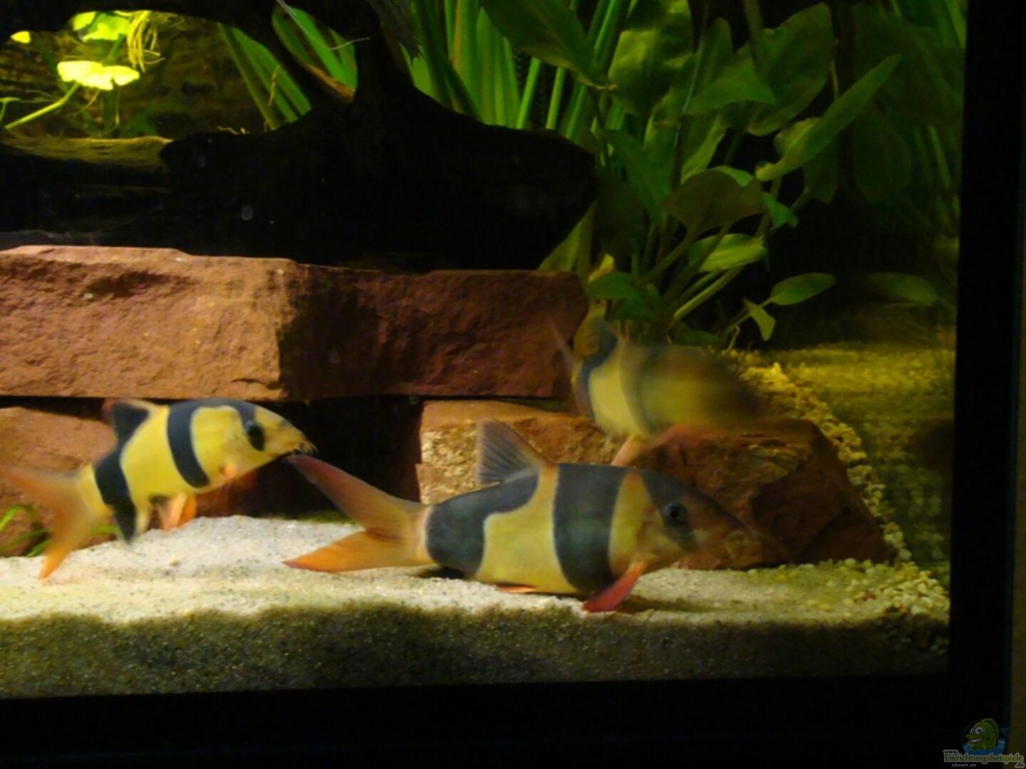 3 x Skalare (1m; 2w) 2 x Bolivianischer Schmetterlingsbuntbarsch (Mikrogeophagus altispinosus) (vermutl. 2m) 3 x Prachtschmerle (Chromobotia macracanthus) ca. 30 x Rotkopfsalmler ((Hemigrammus bleheri) 10 x Panzerwelse (Corydoras schwarzii) 1 x L018 (Golden Nugget) 1 x L173 (Hypancistrus spec. aff. zebra) 5 x Ohrgitterharnischwels (Otocinclus)