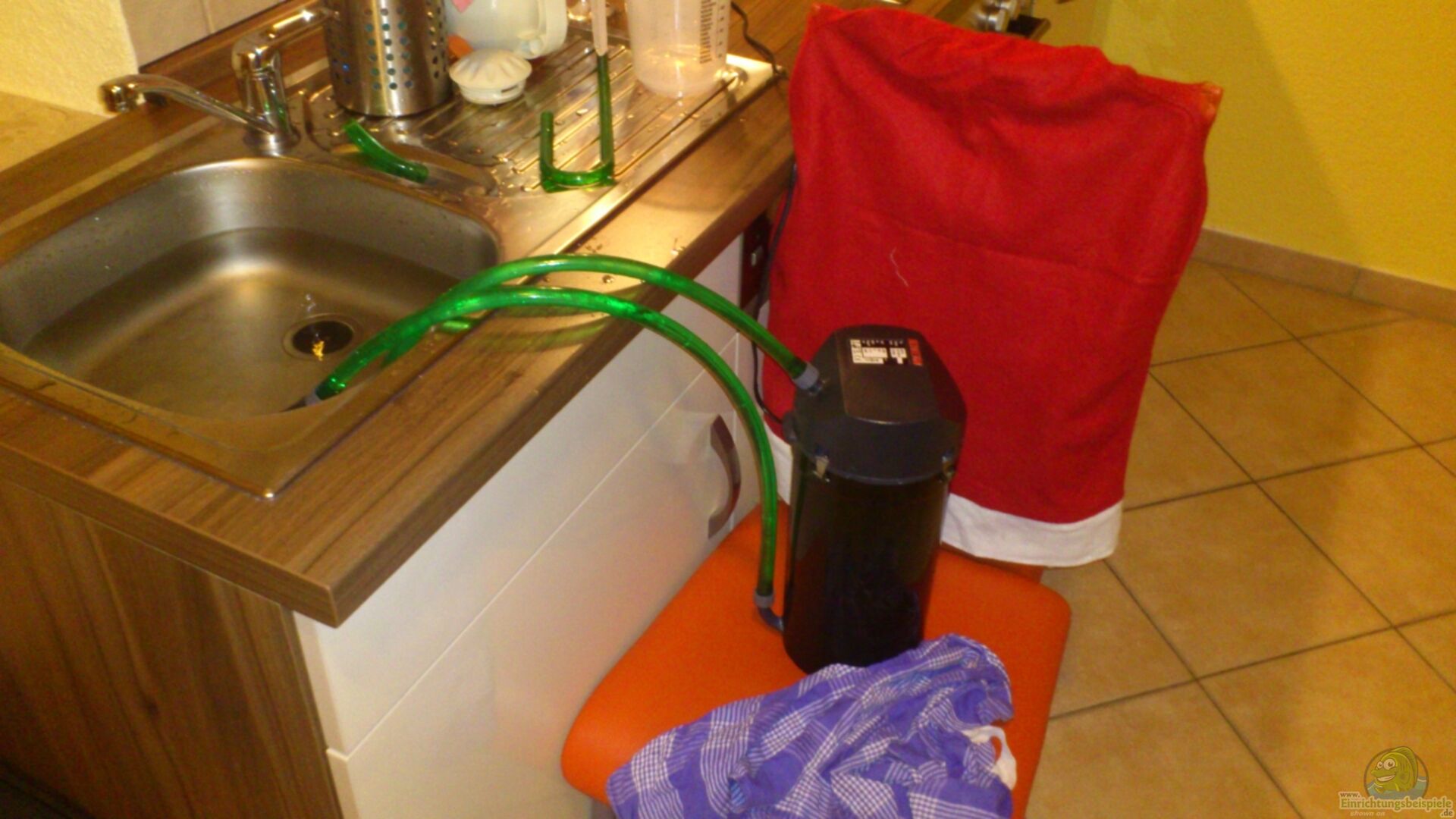 100 Watt Heizer von Jaeger unabhängig vom Becken eine "Torfkanone" aus einem alten Eheim-Filtertopf 2015 ohne intigrierte Pumpe zur Ansäuerung des Wechselwasser, betrieben mit einer kleinen 5W-Pumpe