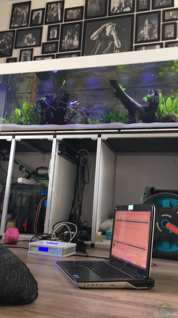 Ma??anfertigung in 10mm Glas, ??berlaufschacht und vier Bohrungen (drei für Filterschacht und eine au??erhalb des Schachtes für Wasserwechsel) Unterbau wurde aus Aluprofilen von MarineSystems gebaut, darunter und darauf eine 3cm Schalungsplatte und Styropor zur Lastverteilung. Verkleidet wurde das Becken durch Möbelbauplatten Die Abdeckung wurde von einem Aquarienbauer auf Ma?? gefertigt.