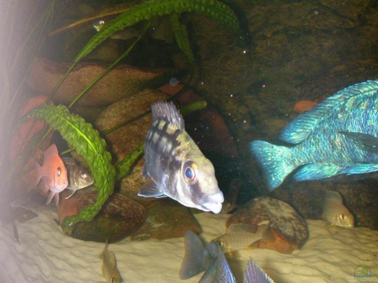 Hier findest Du traumhaft schöne Aquarien, die mit Buntbarschen der Art Nimbochromis polystigma (Vielfleckmaulbrüter) aus dem Malawisee besetzt sind.