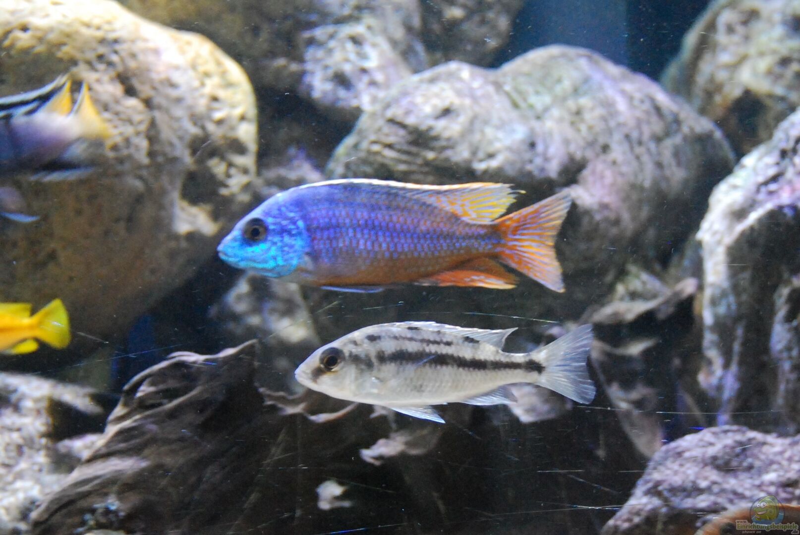 Hier findest Du traumhaft schöne Aquarien, die mit Buntbarschen der Art Nimbochromis polystigma (Vielfleckmaulbrüter) aus dem Malawisee besetzt sind.