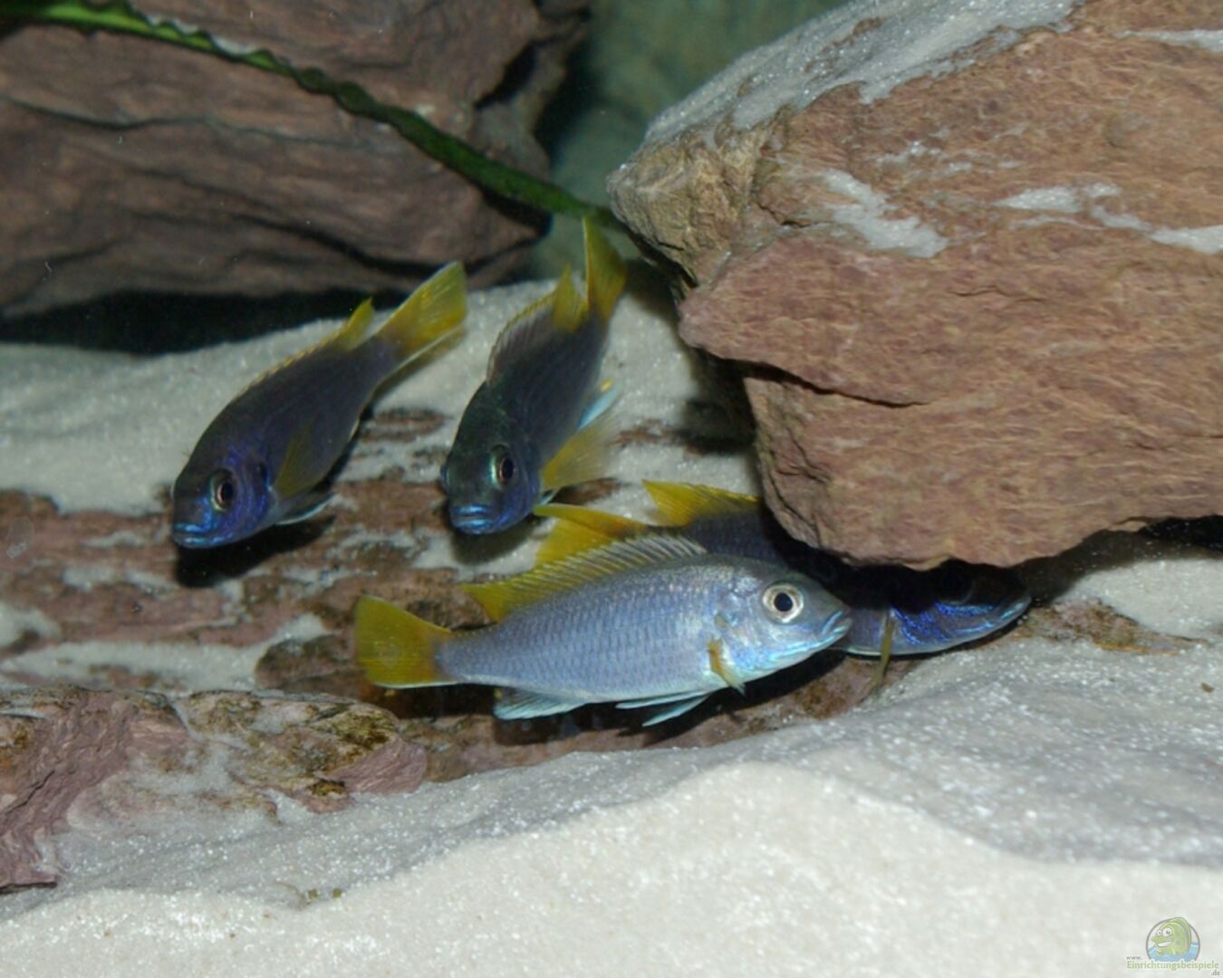7x Iodotropheus sprengerae (Geschlechter kann ´ich´ noch nicht bestimmen) 7x Pseudotropheus acei (Geschlechter kann ´ich´ noch nicht bestimmen) 8x Cynotilapia afra White Top Likoma (Bisher min. 3 Männchen) 7x Melanochromis auratus (Bisher hat sich ein Männchen geouted) 1x Blaue Malawi-Krabbe Alles noch relativ junge Fische in der Grö??e von 4-6cm. Daneben schon einige jungfische, die zwischen den vielen Steinspalten Schutz suchen.
