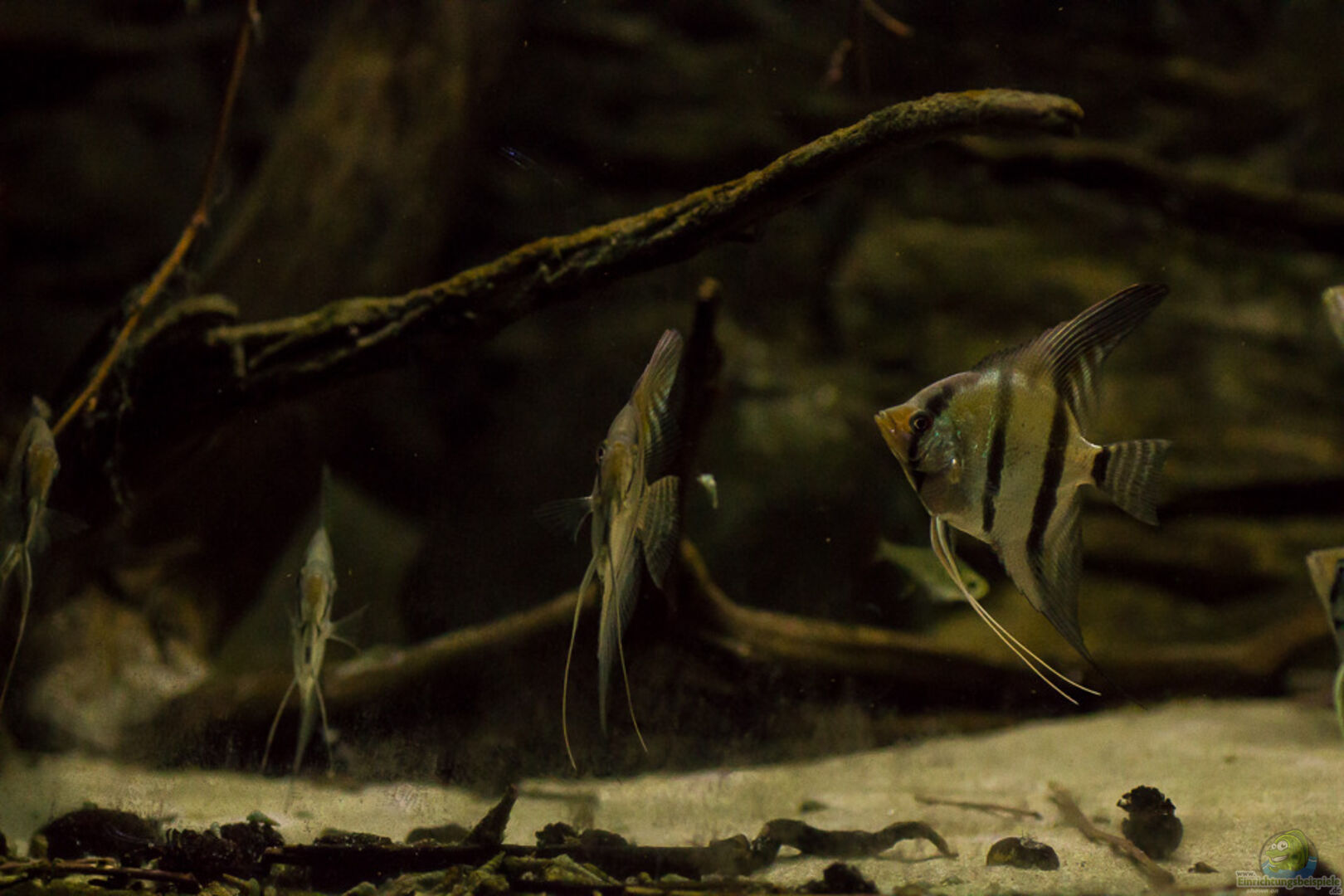 10x Pterophyllum scalare, 2x Cleithracara maronii, 14 Pristella maxillaris, 3x Corydoras aeneus (wird noch aufgestockt).