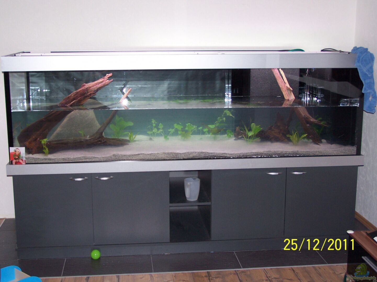 Mein Aquarienbauer Becken ins eine Sonderanfertigung auf meinen Wunsch von der Firma Aquarienbau Geschwill in Hassloch und Wurde mir am Morgen vom 24.12. geliefert. Das Becken ist aus 15mm dickem Glas geklebt. Die Front und linke seite Scheibe ist aus Wei??glas, die zwei anderen aus normalem Glas. Die beiden Filter sind aus Schwarzglas. Bodenplatte geteilt und mit 15cm breitem streifen überklebt. Die Ecken sind mit zusätzlichen glasstreifen verstärkt. Rückwand beklebt mit Matt Schwarzer [...]