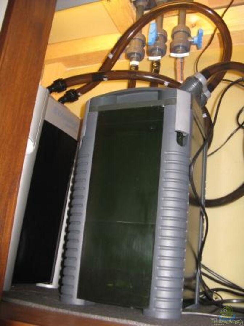 Tunze 6045 Strömungspumpe (4500L/Std) mit nanostream rock verkleidet. Eingebaut in den Felsenaufbau (rechts im Becken). Habe an die Flügel des nanostream Rock Schaumstoff (mit Hei??kleber) angebracht, damit keine Vibrationen an das Becken, über die Steine bzw. die Rückwand, abgegeben werden können. Funktioniert gut. Man hört die Pumpe nicht. Läuft von 10:00-13:00 Uhr und von 15:00-20:00 Uhr (über Zeitschaltuhr).