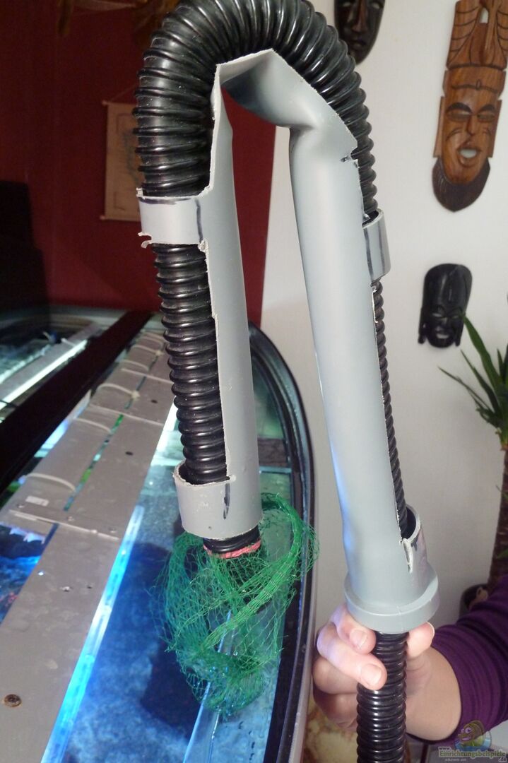 Tunze Turbelle Nanostream 6045 Leistung: auf grö??ter Stufe 4.500l/h bei 7W. Sie wird im Intervall von 20 min/ h von 7.00 Uhr bis 20.00 Uhr betrieben. Standort ist hier die vordere linke AQ-Ecke, versteckt in einer Höhle des Felsenmoduls unter der Wasseroberfläche. Ihre Strömungsrichtung an der Frontscheibe entlang, gegen die Strömung der anderen Pumpen, bewirkt so ein aufwirbeln des Drecks, so dass Mulmablagerungen keine Chance haben. -------- 1. Heizer: " Trixie " [...]