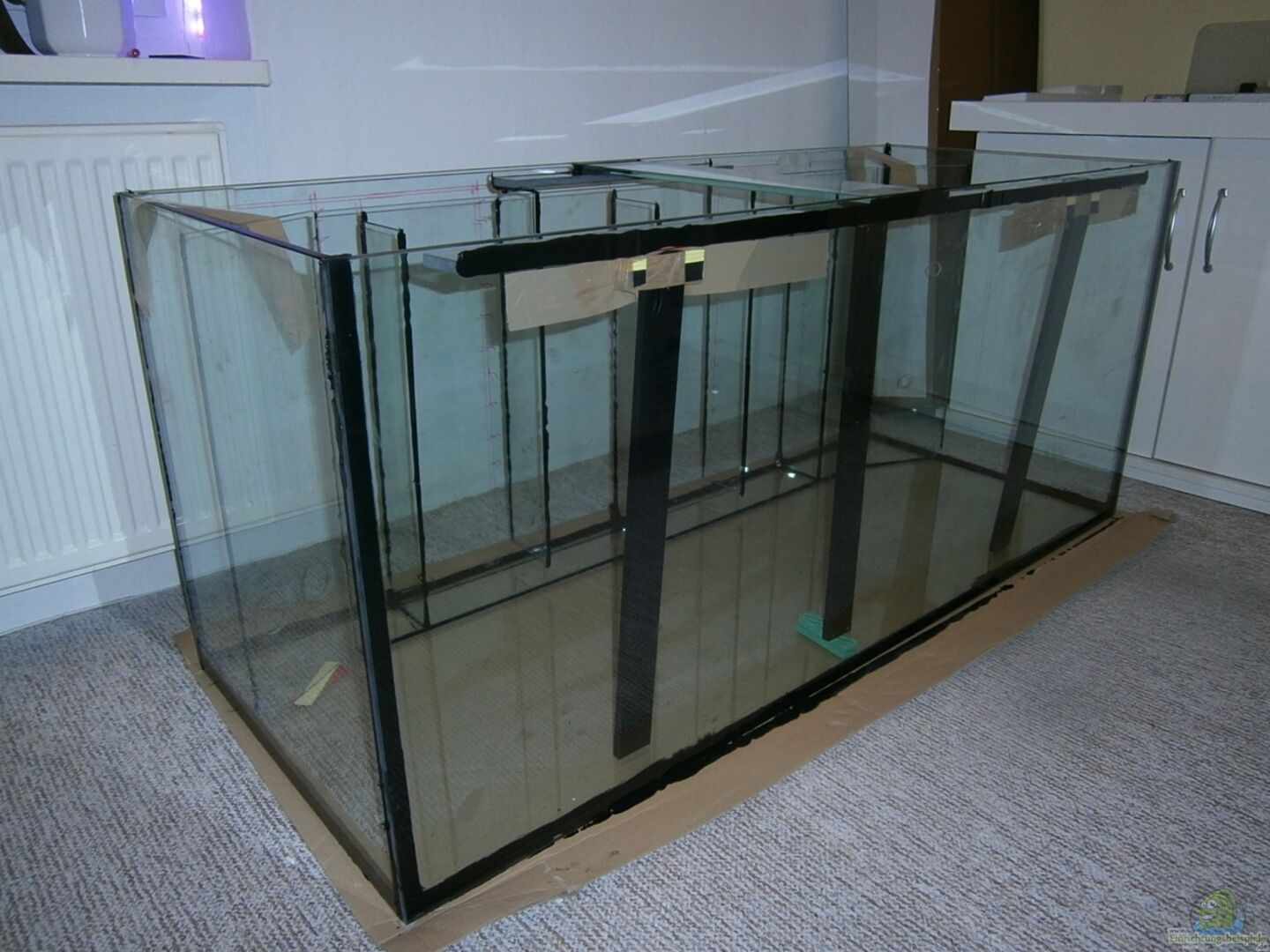 Das Becken habe ich selbst geklebt.12 mm Glas, Sto??verklebt mit innerer Kehlnaht.Es hat einen 6-Kammer Bioinnenfilter über die gesammte Länge.