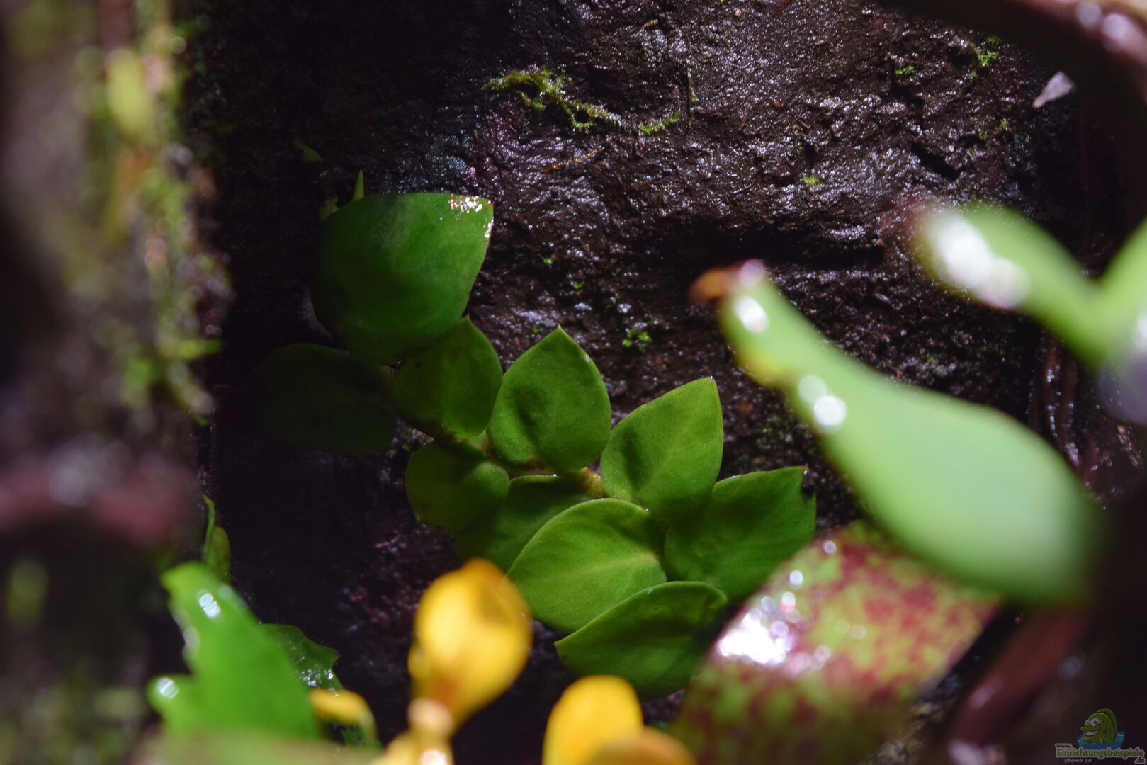 Ranken: Marcgravia umbellata, Ficus spec. Borneo, Ficus quercifolia, Pyrrosia nummularifolia, Rhapidophora hayi Bromelien: Neoreglia Akeso, Neoregelia liliputiana, Neoregelia Atlantis Farne und Bodendecker: Taxiphyllum Spiky, Hydrocotyle tripartia Mini, Begonia prismatocarpa, Ophiopogon japonicum Orchideen: Macodes petola