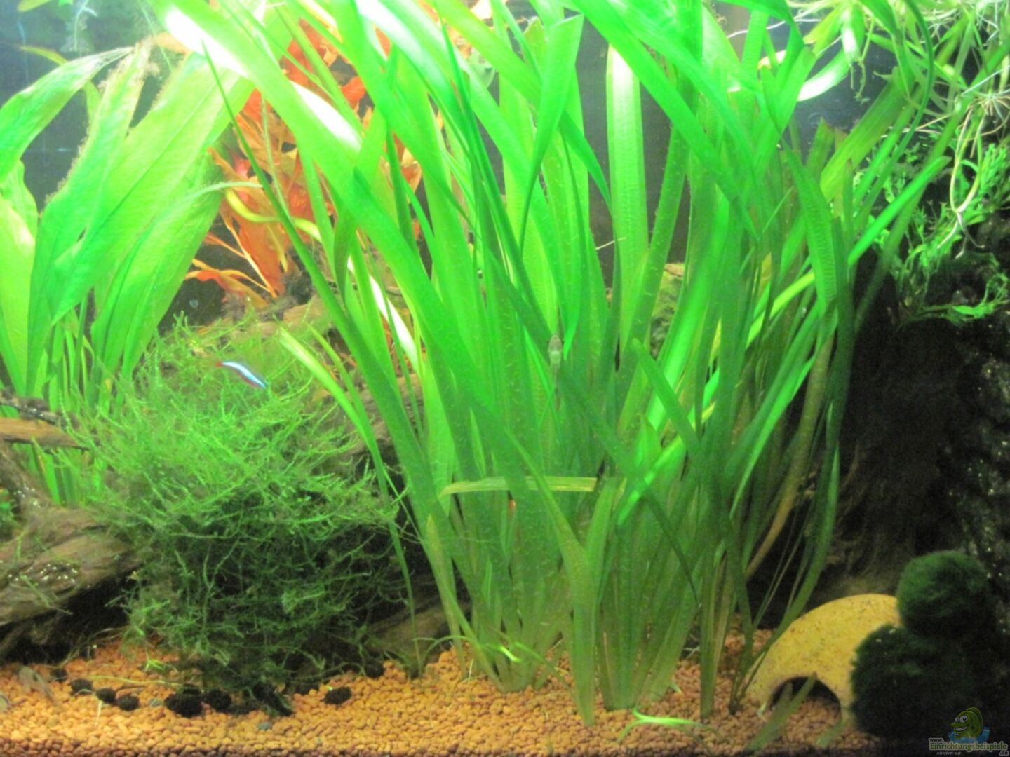 Typ: Juwel Rio 240. Das Becken steht als Raumteiler zwischen Wohn- und Essbereich. Es kann von 3 Seiten eingesehen werden, was die Gestaltung ziemlich erschwert, da es ja von allen Seiten einigerma??en gut aussehen soll. Eine Seitenwand (die an der Wand steht) wurde an der Innenseite des AQ mit "Struktur- Rückwand" von Juwel beklebt.