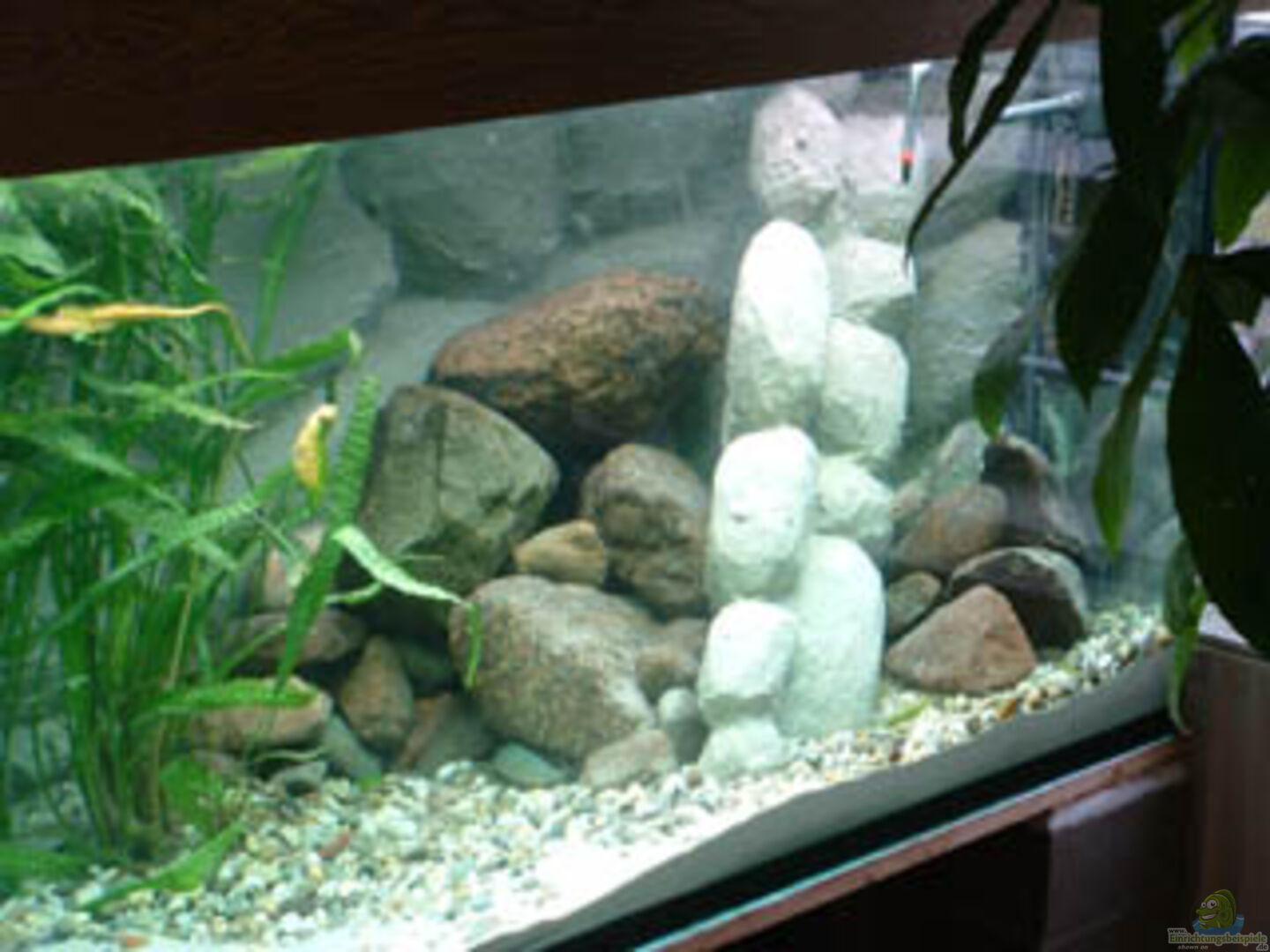 Becken ist schwarz rund verklebt. Front-, Rück- und Seitenscheiben 12mm Glas, Bodenscheiben 15mm. Da das Becken bei der recht gro??en Länge eine durchgehende Bodenscheibe hat, sind hierauf vorne und hinten je eine Querstrebe mit ca. 10cm Breite und Dehnungsfugen zu den Anschlu??scheiben angebracht. Oben befinden sich 2 Längs- und 3 Querstreben. Der Unterbau ist eine Eigenkonstruktion. Auf dem Fu??boden liegen der Länge nach jeweils vorne und hinten ein Stahlträger, auf welchem sich vier [...]