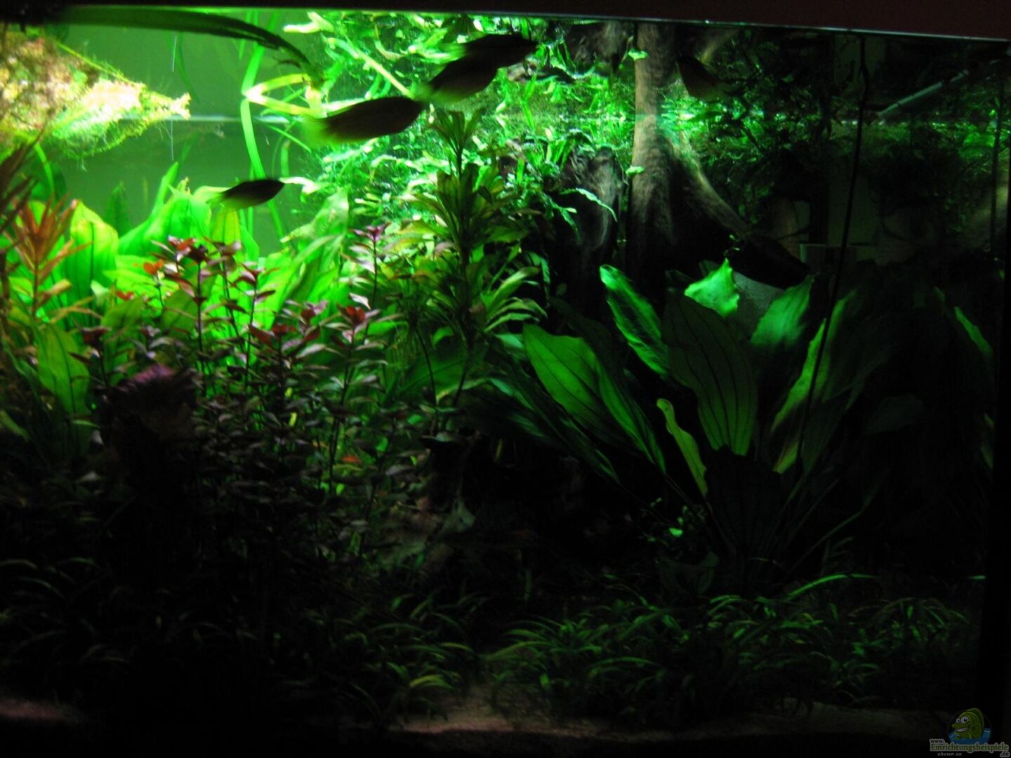 Glasdicke 12mm. Das Becken hat keine Bohrungen, sondern links vom Becken sind 10% (20cm, ca.100 Liter) für einen gro??en Biofilter abgetrennt, so dass das Wasser nur innerhalb des Beckens von links nach rechts gepumpt wird. Das Becken stammt inkl. Abdeckung und Leuchtbalken von Klaus Ruffert und seinem Team "Diamantaquarien".