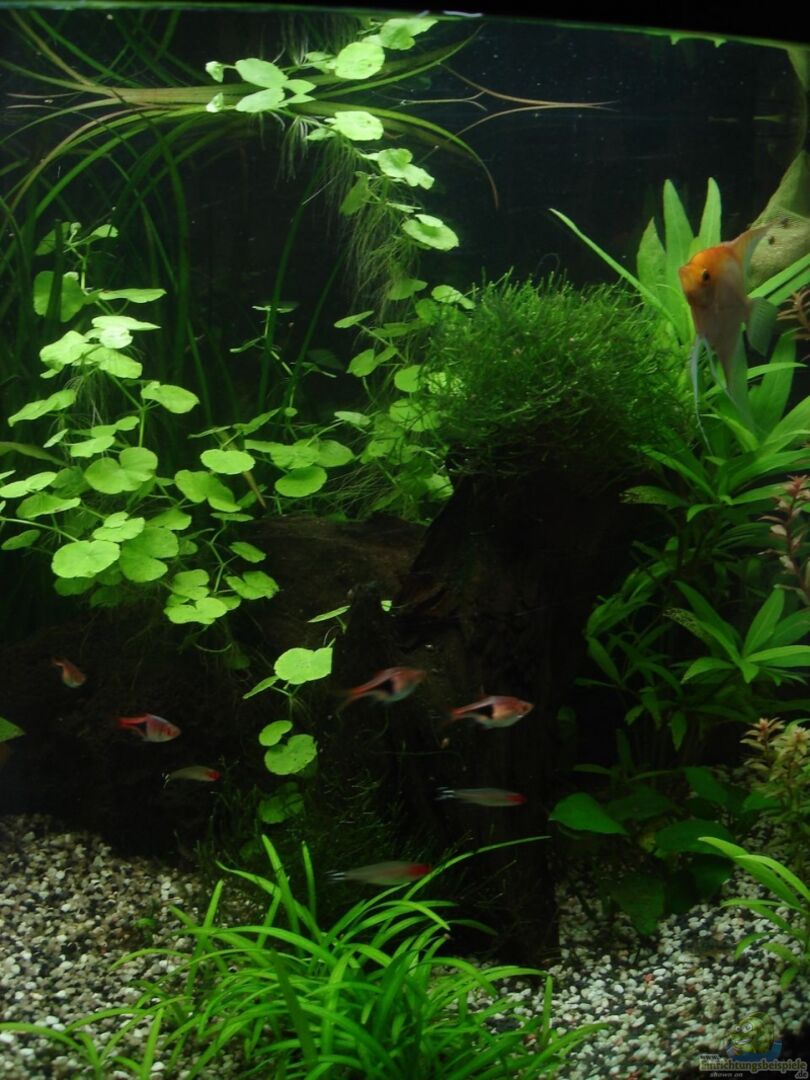 Vordergrund: Vesicularia dubyana - Javamoos - teilweise auf und an den Wurzeln Hemianthus callitrichoides Cuba - Zwerg-Perlkraut Rotala rotundifolia - Kleinblättrige Rotala Anubias barteri nana - Zwergspeerblatt Mittelgrund: Anubias barteri ???Coffeefolia??? - Kaffeeblättriges Speerblatt Cryptocoryne wendtii Hygrophila corymbosa - Kirschblatt-Riesenwasserfreund Ludwigia glandulosa - Rote Sternludwigie Hintergrund: Hygrophila polysperma - Indischer Wasserfreund Vallisneria [...]
