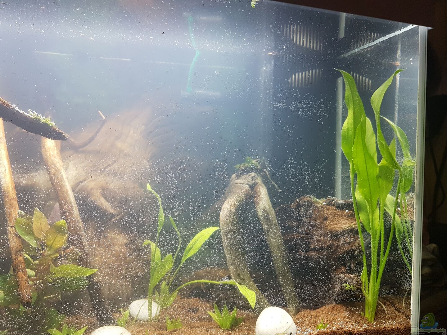 Eine Dicke Wurzel an der Rückwand hingestellt so das sie vom Boden bis zur Wasseroberfläche reicht. Es ist eine Mangrovenwurzel und die haben wir über A....n bezogen und wahren sehr überrascht von der Schönheit dieser Wurzel. 3 x15-20 cm Moorkienwurzel Moorkienholz mit 2 Garnelenbäumchen Wurzel. Auch bestellt und es sind auch schöne Wurzeln. 2 Kokosnuss schalen als Unterschlupf. Ein Paar kiesel.