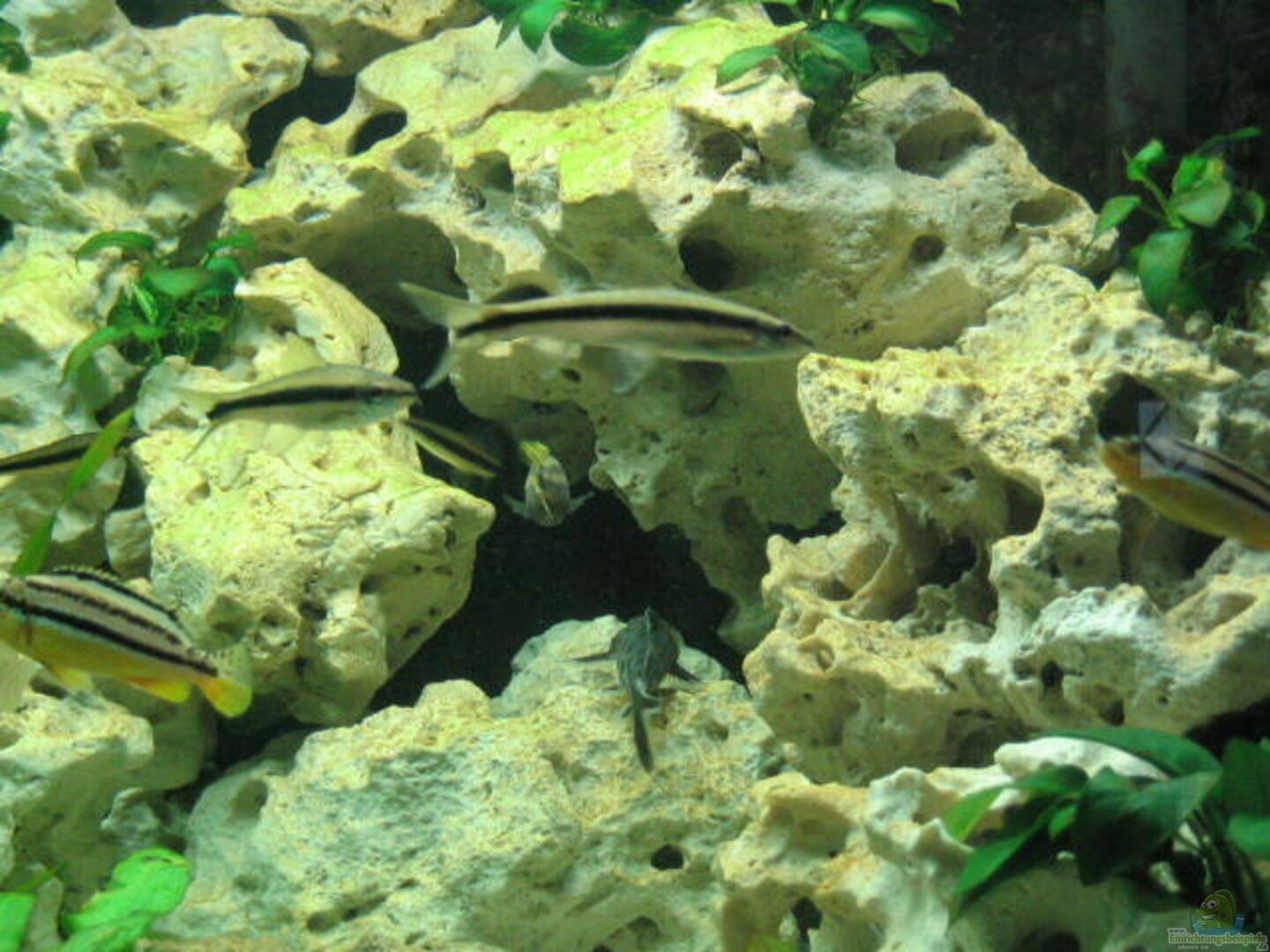 ca.40 Kilo Lochgestein drunter natürlich Schutzmatte. Alle steine stehen ca, 4-5 cm von den seitenscheiben ab für weitere versteckmöglichkeiten.