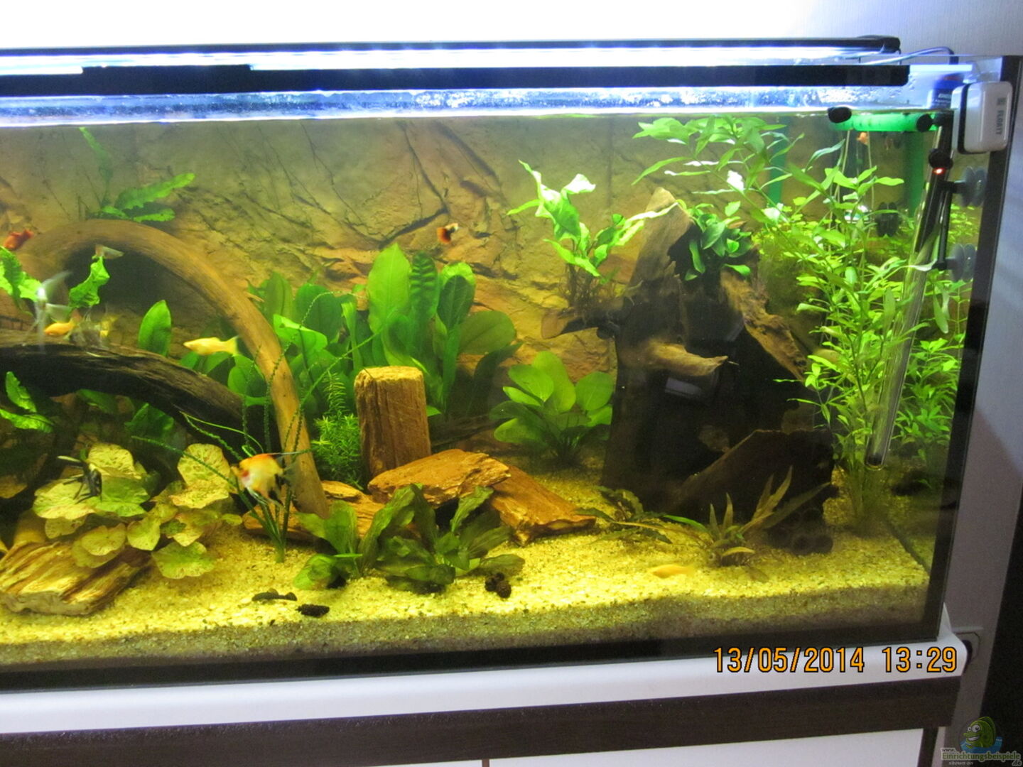Der Unterschrank ist ein Eigenbau des Erstbesitzers aus Kanthölzern, einer Küchenarbeitsplatte und einer Aquarienunterlage von JBL. Die drei Türen die die Technik und viele Utensilien verbergen sind aus Sperrholz, mit handesüblichen Möbelgriffen aus Alu und werden mit Magneten an den Kanthölzern gesichert.Hier hat sich der Erbauer richtig Gedanken gemacht, vielen Dank.
