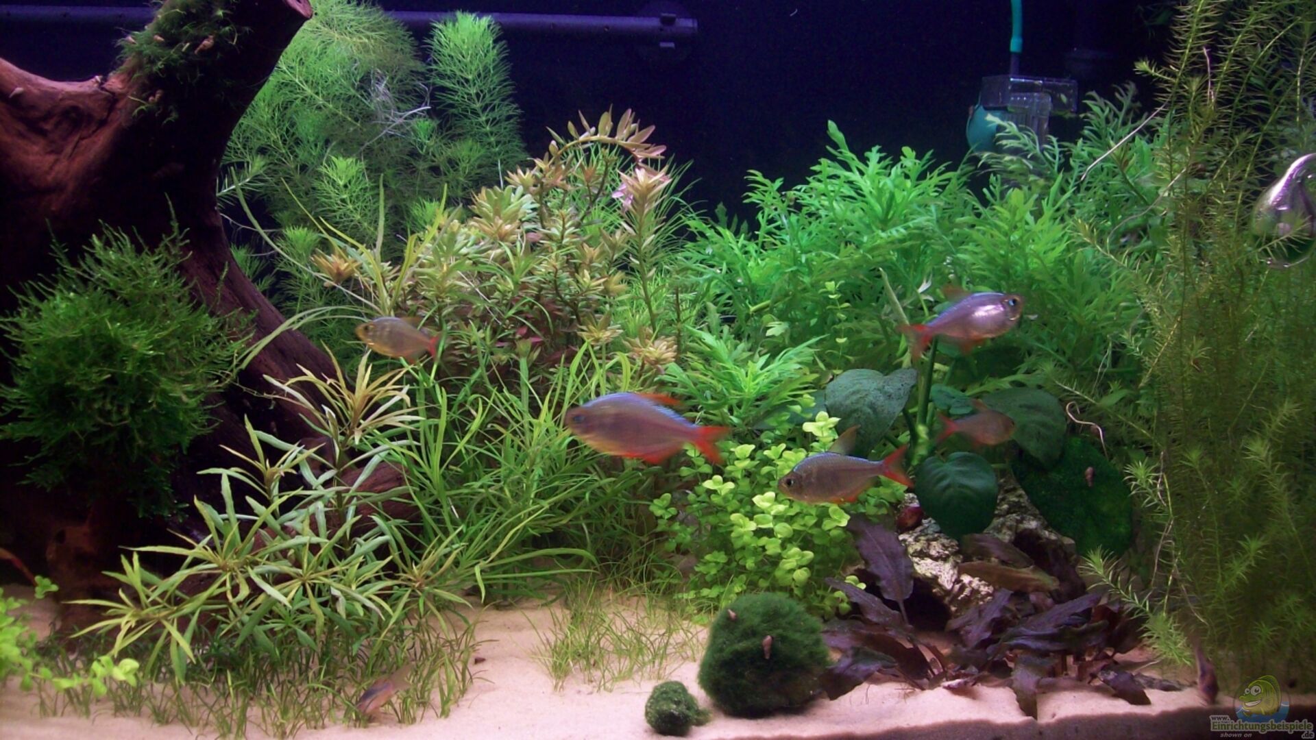 Vordergrund: Micranthemum umbrosum/ Perlenkraut Hydrocotyle cf. tripartita/Kleeblatt Pogostemon helferi Hemianthus callitrichoides "Cuba" Ammania sp.Mini Blyxa japonica Alternanthera reineckii "rosaefolia minor" Staurogyne repens Mittelgrund Najas sp. "Roraima"/Roraima-Nixkraut R. macrandra "long leaf red" Nesaea spec."golden" Ludwigia sp. 'Super Red' Cryptocoryne beckettii ''petchii'' Rotala [...]