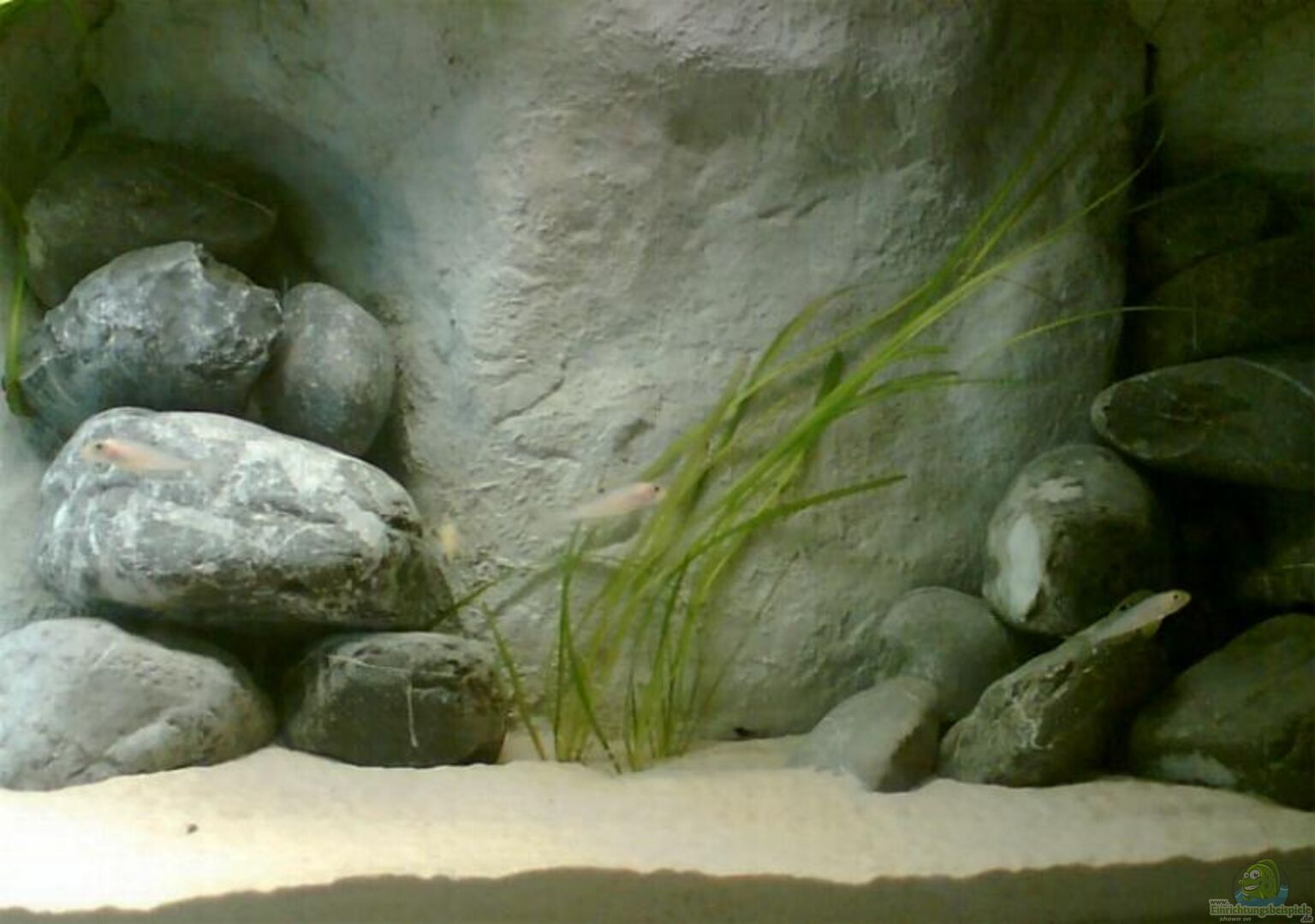 10 mm Glas, Stoßverklebung, 10 cm Mittelsteg Unterbau aus insgesamt 18 Y-Tong Gasbetongsteinen (3 Säulen), die ich mit Tiefgrund bestrichen habe, um die Bröselproduktion zu unterbinden. Diese stehen auf und unter einer 18mm Holzplatte. Außerdem wurde die hintere Scheibe des Beckens mit Styropor verkleidet um dem Energieverlust entgegenzuwirken.