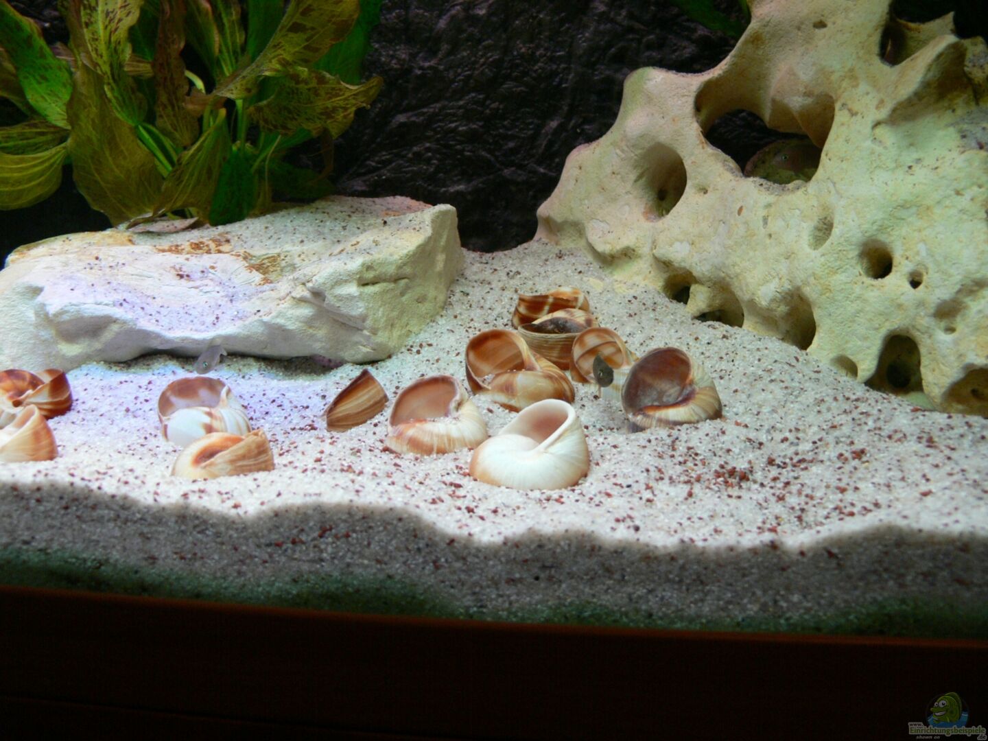 Steckbrief Schneckenbuntbarsche 5Stk. Neolamprologus multifasciatus (ein Pärchen gesichtet) +3+5? Nachwuchs Grö??e: Männchen werden bis 4 cm gro??, Weibchen bleiben mindestens 1 cm kleiner. Wasser pH-Wert über 7, eher 8, ggf. Filterung über Muschelgru??; möglichst hartes Wasser; Temperaturen zwischen 25 und 27°C. Haltung Bodenfisch, beansprucht aber auch einigen Platz über seinem Revier; Bodengrund sollte Sand sein, mit Steinen und Pflanzen als Reviergrenzen. [...]