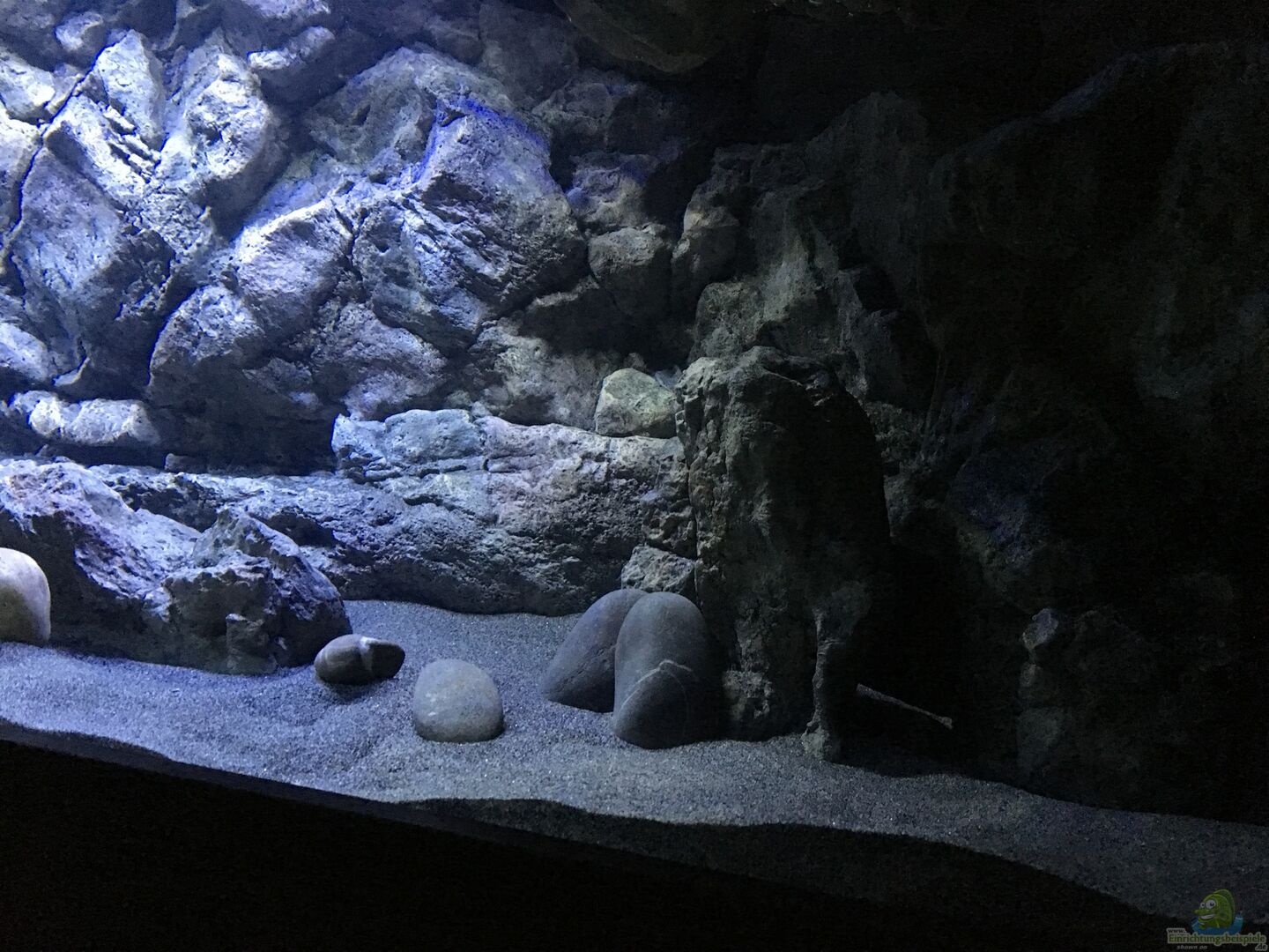 RockZolid Komodo Rückwand. 4 rockmodule auf Bodem und 2 Module links und rechts bestätigt an die Querstreben. Die Fische können hinten der Rückwand schwimmen, Auf beide Seiten vom Aquarium ist ein "Peephole" so wir schauen können was da hinten so alles passiert :-) Kies von Rhein (verschiedene Grösse und Farben)