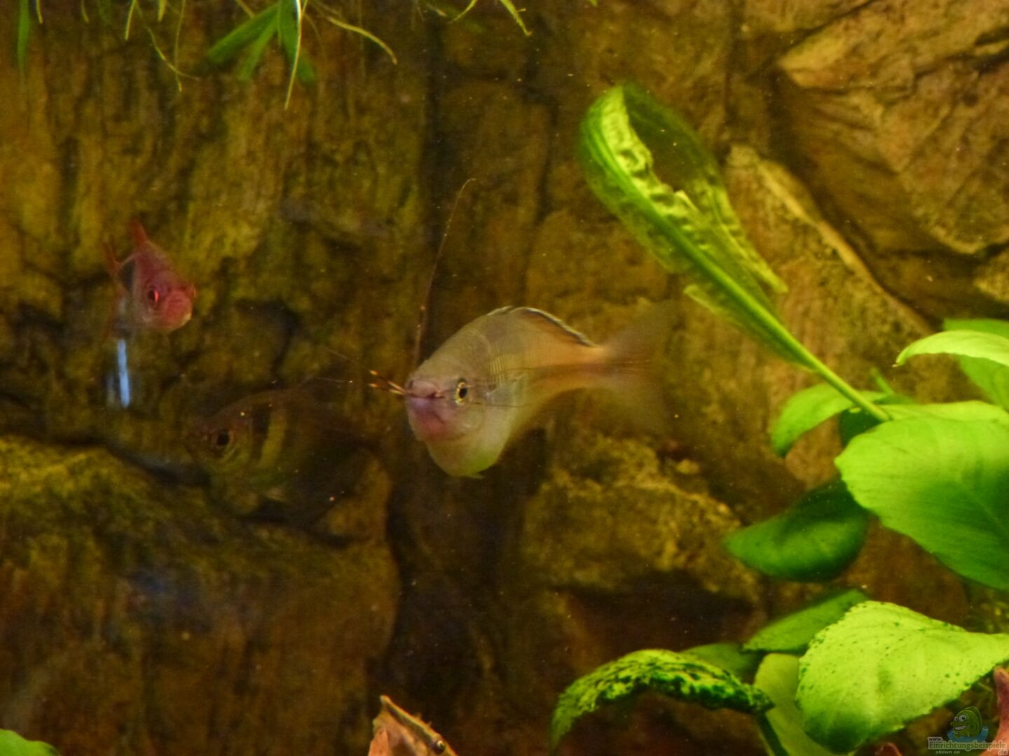 5 Pterophyllum Scalare Varianten: 1 Gold Pearlscale & 1 Schwarz (Paar, bereits gelaicht), 1 Naturfarbe & 1 Leopard (evtl. Paar, noch nicht gelaicht), 1 Koi 3 Harlekin/Ajamaru-Regenbogenfische (Melanotaenia boesemani): : 1 Weibchen 2 Männchen 4 Trauermantelsalmer (Gymnocorymbus ternetzi): 1 Weibchen 3 Männchen (bereits mehrmals gelaicht) 5 Black Molly (Poecilia sphenops): 4 Weibchen 1 Männchen 6 Platys (Xiphophorus maculatus) 4 Weibchen 2 Männchen 3 Rotstrichbarbe (Puntius denisonii) 1 [...]