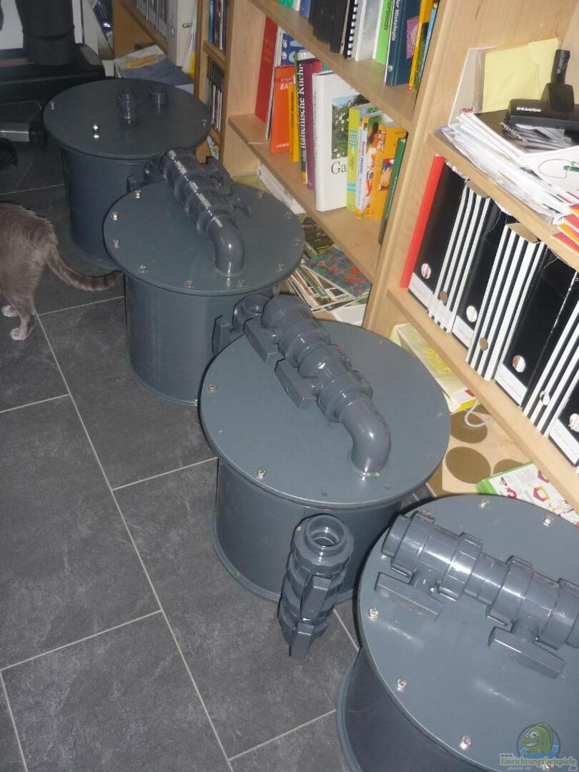 Filter im Einsatz, man vergleiche das Größenverhältnis mit den 1 ltr. Futterdosen