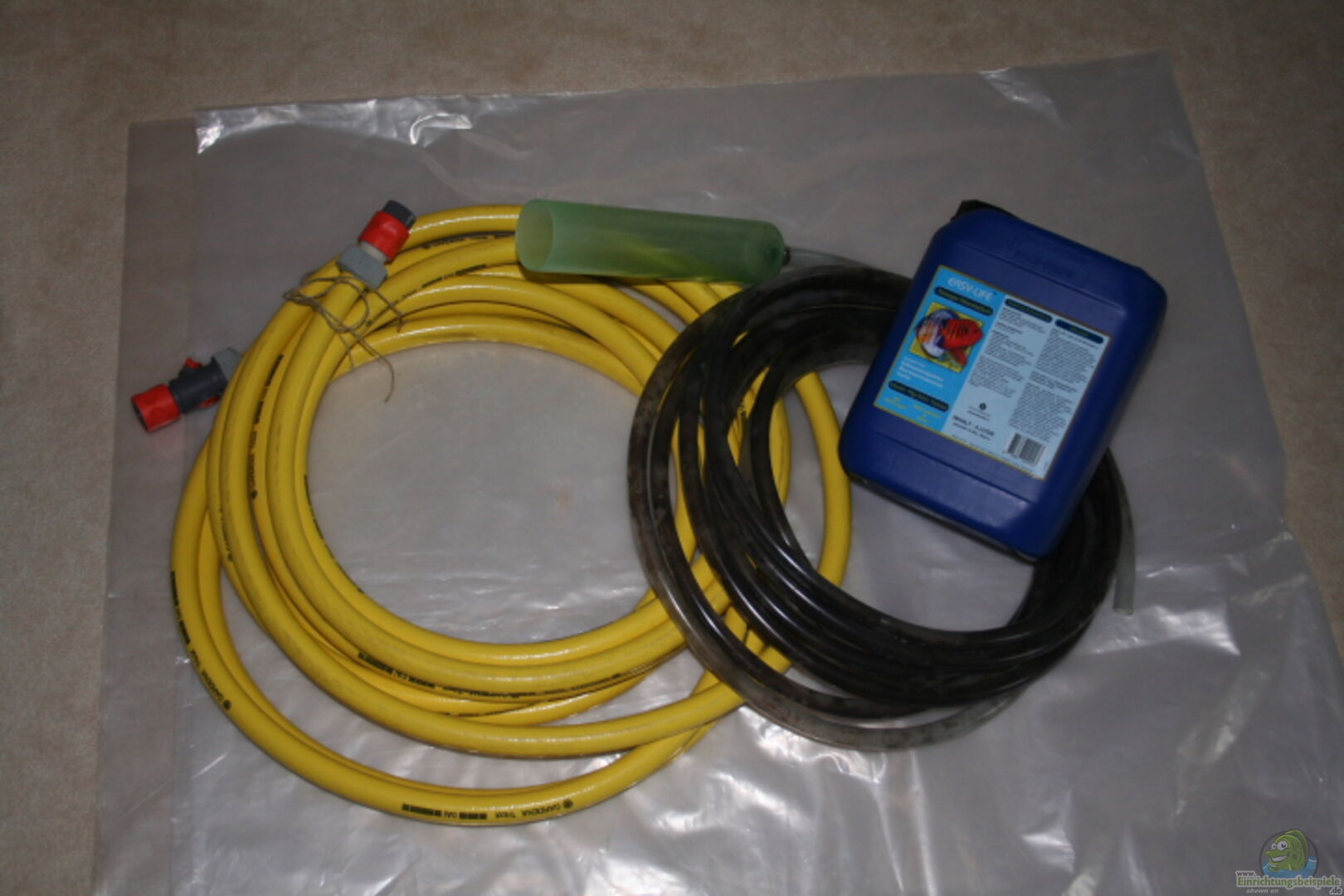 300 W Regelheizer Ich möchte an dieser Stelle noch auf (m)eine Sicherheitsbohrung hinweisen, die sich ca 1, 5 cm unter dem Wasserspiegel im Ansaugrohr befindet. Hätte mich auch über diesen Hinweis gefreut und lieber nicht das leere Aquarium am Morgen bewundert. ;o) Gereinigt wird das AQ mit einem Mulmsauger. Das anfallende Schmutzwasser wird über einen Anschlu?? der Balkonentwässerung in die Regenrinne abgeleitet. Gleichzeitg wird über einen Gardena-Schlauch AQ-Wasser in die Badewanne abgesaugt. Zum [...]