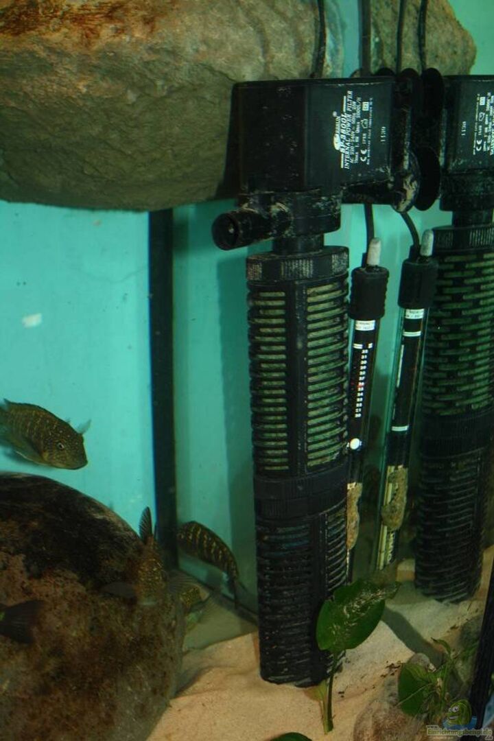 UVC Licht mit Pumpe (JBL je 5Watt ca. 500L/h Bypass mit HMF verbunden), Abdeckung (Juwel) und Licht (T5 1xPlant 1xColor Dennerle je 36Watt), Heizstab (Jäger/Eheim 300Watt)