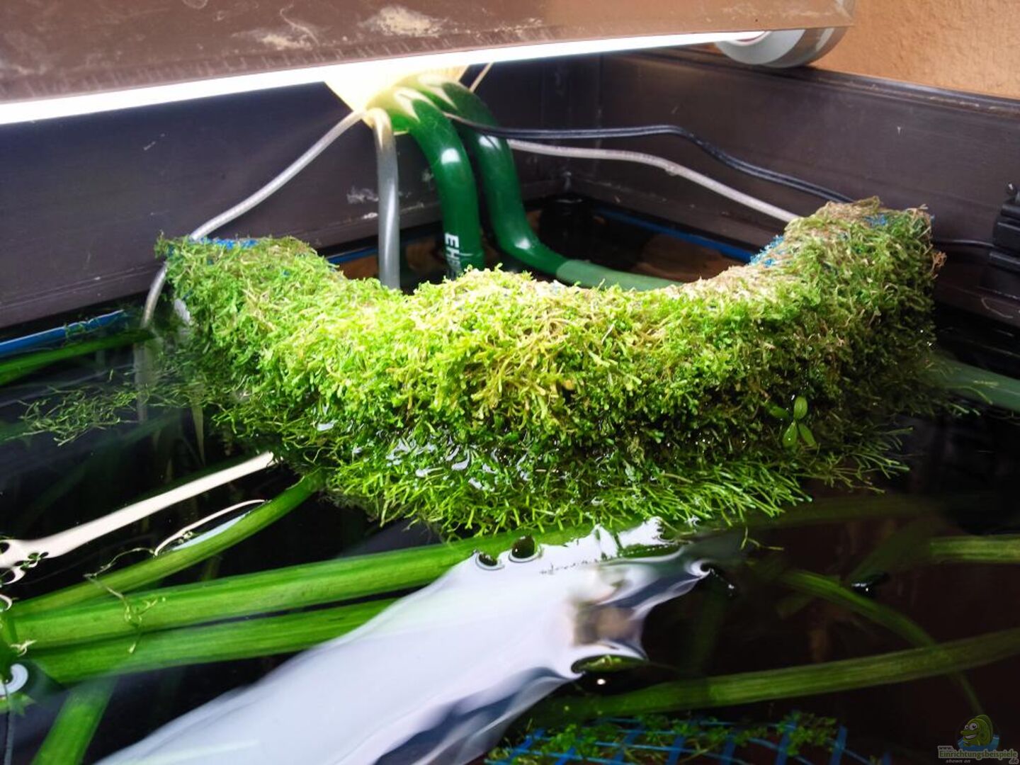 Mooskugeln (Cladophora aegagropila) auf Wurzel aufgebunden Vallisneria spiralis Brauner Wasserkelch / Wendt`s Wasserkelch braun (Cryptocoryne wendtii brown) Teichlebermoos (Riccia fluitans) breite Amazonaspflanze (Echinodorus bleheri) Muschelblume / Wassersalat (Pistia stratiotes) gedüngt wird wöchentlich mit EasyCarbo, ProFito und Ferro (2ml)