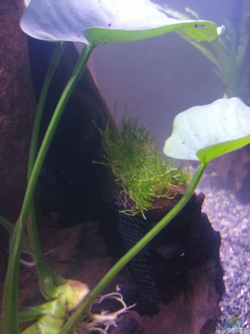 1x Echinodorus barthii 1x Anubia barteri auf Wurzel gebunden. 1x Schwarzwurzel Farn Microsorum pteropus wurde einmal geteilt und auf die Wurzel gebunden. 1x Riccia fluitans wurde ebenfalls geteilt und an 3 verschiedenen Stellen auf die Wurzeln gebunden. 1x Salvinia auriculata