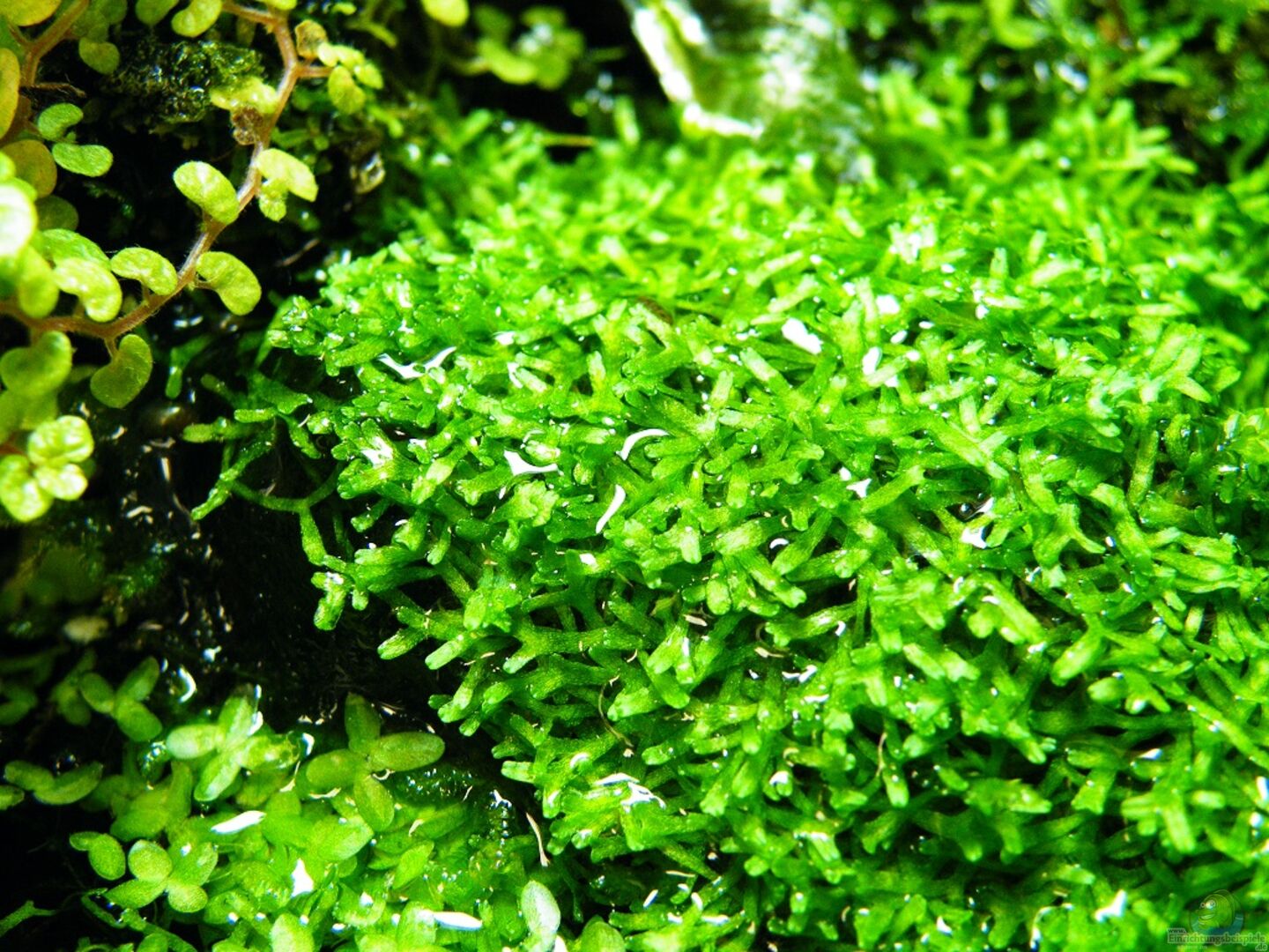 Unter Wasser: Javamoos Rundblättrige Rotala - Rotala Rotundifolia Grüne Rotala - Rotala sp. `Green` ??ber Wasser: Bubikopf Javamoos - emers gezogen kleine Orchidee und zwei Tillandsien