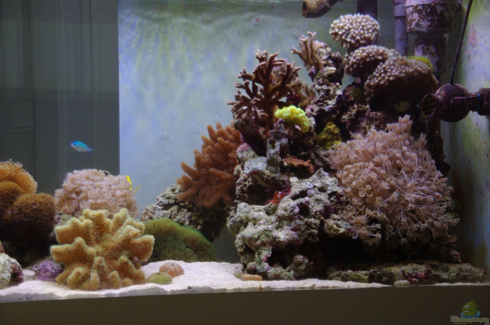 Nach vielen Jahren als Sü??wasseraquarianer baue ich mir gerade ein MW-Becken auf. Das Becken dient als Raumteiler, wobei die Ecke mit den Ab-/Zuflüssen blickdicht gestaltet wird, damit die Fische einen Rückzugsbereich erhalten. Das Becken hat drei Bohrungen für die Zu- und Abflüsse zum 120l Technikbecken. Die Abflussmenge regelt sich automatisch über den Wasserablauf "Riff-silent" vom Korallenriff-Center in Wien. Eine absolut geniale Erfindung, die leise ist und die Einstellung [...]
