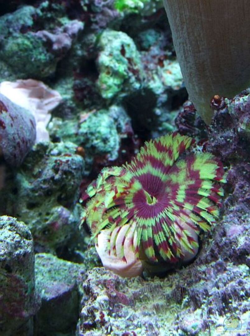 Korallen: * Zoanthus sp., unterschiedliche Färbungen. Erst nach dem zweiten Versuch klappte das Einbringen! Beim ersten mal wunderte ich mich, dass die Polypen nach und nach verschwanden... bis ich eine Heliacos-Schnecke absammelte und vor allem die dunkelgrauen Asterinas mehrfach beim gemütlichen Mampfen erwischte. Ich war mir nicht sicher, ob die kleinen Seesternchen nicht einfach nur die Gunst der Stunde nutzten und das Werk der Schnecke vollendeten- sprich, nur an bereits angeschlagenen Polypen [...]