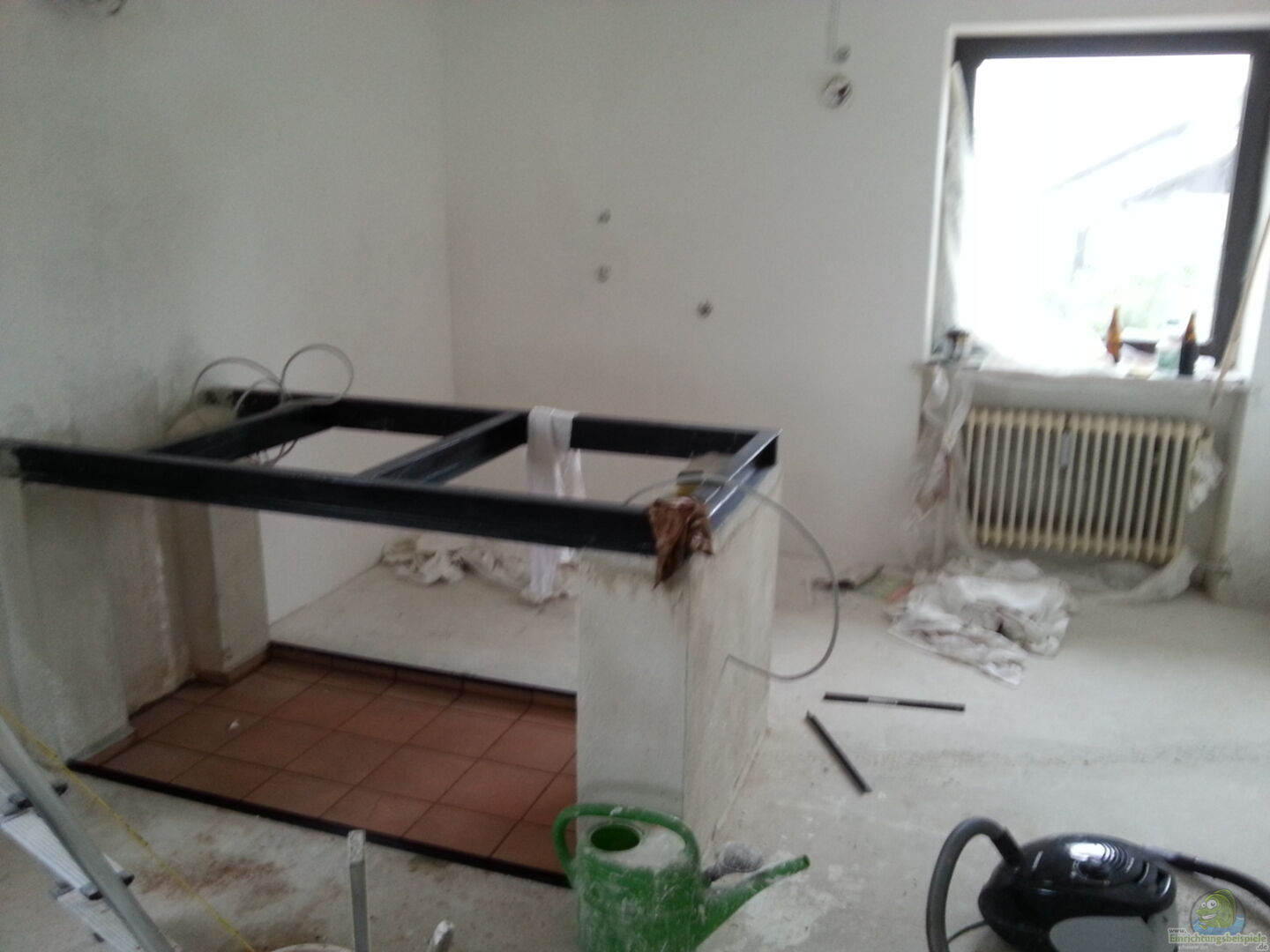 Filterbecken mit abfluss verbunden (wird umgebaut das der Abfluss zum teich geht) An der Aussenwand oben einen Abluftventilator angebracht und unten zuluftlöcher. In der Filterkammer ist Caulerpa taxifolia - Grünalge und wird wenn das Licht im Haupttank aus geht Beleuchtet (1x Aqua-Medic aquasunspot 12 W LED Spot) bis oben im Haupttank wieder das Licht angeht.
