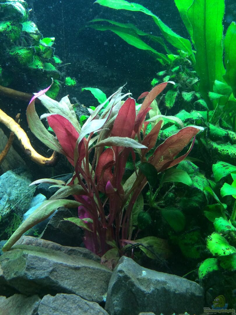 Hier gibt es Infos zu Alternanthera reineckii (Breitblättriges Papageienblatt) und Beispiele für die Einrichtung eines Aquariums mit dieser Pflanze.