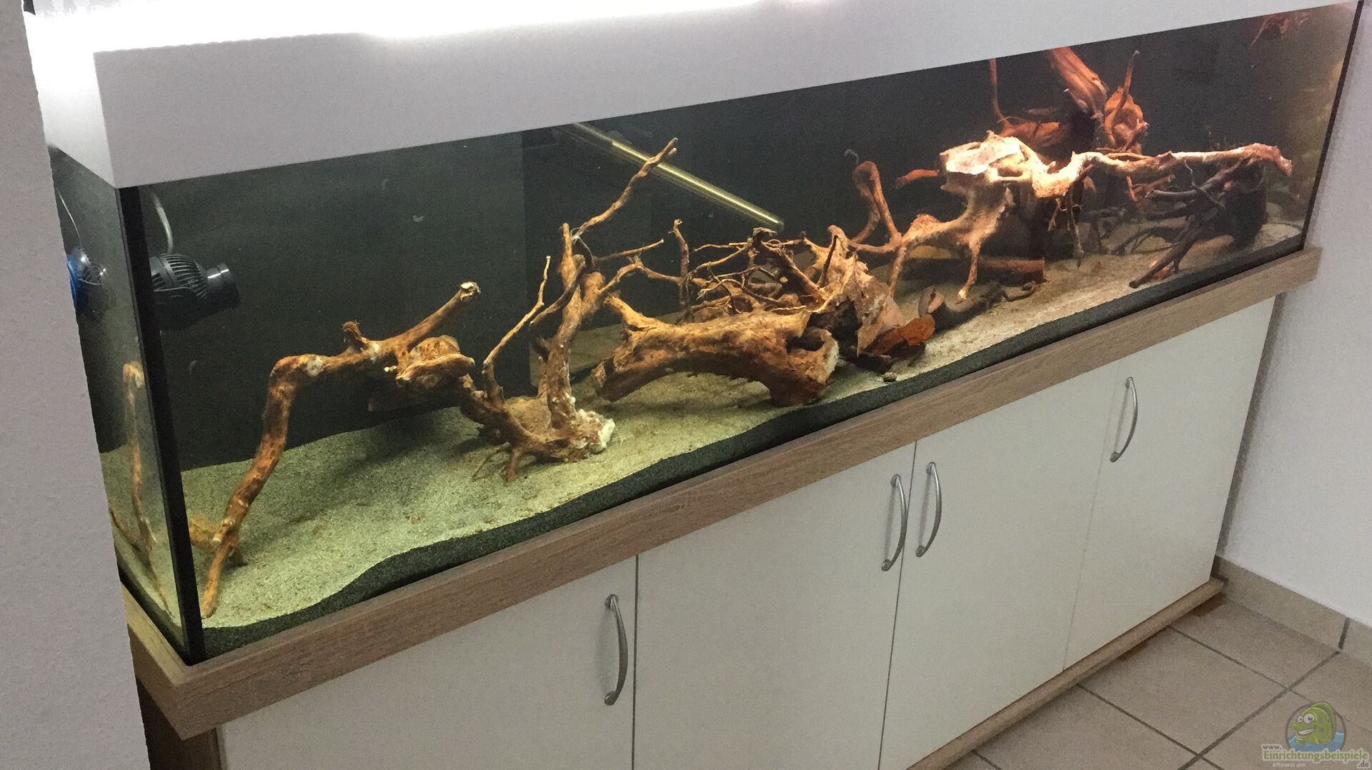 Das Becken besteht aus zwei Steinaufbauten aus Lavasteinen, die fast bis zur Wasseroberfläche reichen und auf denen zwei gro??e rote Moorwurzeln platziert wurden. Ziel war es eine Art Abbruchkante mit einem gro??en Wurzelgeflecht nachzubauen. Jeder Lavastein hat eine individuelle Höhle. Des Weiteren sind noch 3 Moorkienwurzelhöhlen integriert sowie einige Moorkienwurzelstücke. Ingesamt wurde somit eine Vielfalt an Strukturen und Rückzugsräumen sowie schattigen und helleren Bereichen geschaffen, [...]