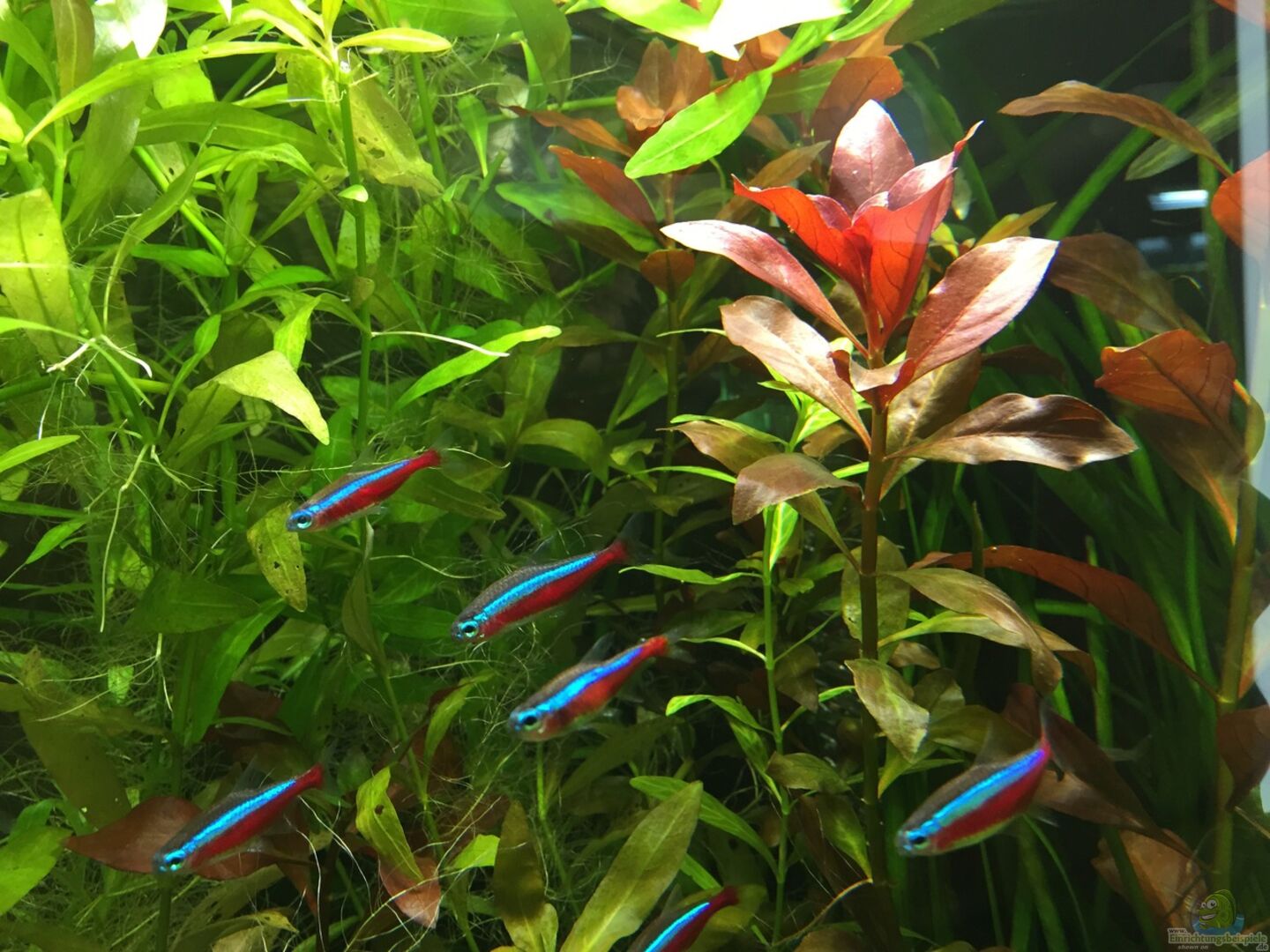22 Paracheirodon axelrodi -Rote Neon 2 Mikrogeophagus ramirezi (w normal + m Schleier) -Schmetterlingsbuntbarsche 1 Ancistrus sp. (w) -Brauner Antennenwels 10 Caridina japonica - Amanogarnelen 4 Atyoida pilipes - Zwergfächergarnelen Einige Red Fire Garnelen Div. Posthorn- und Blasenschnecken