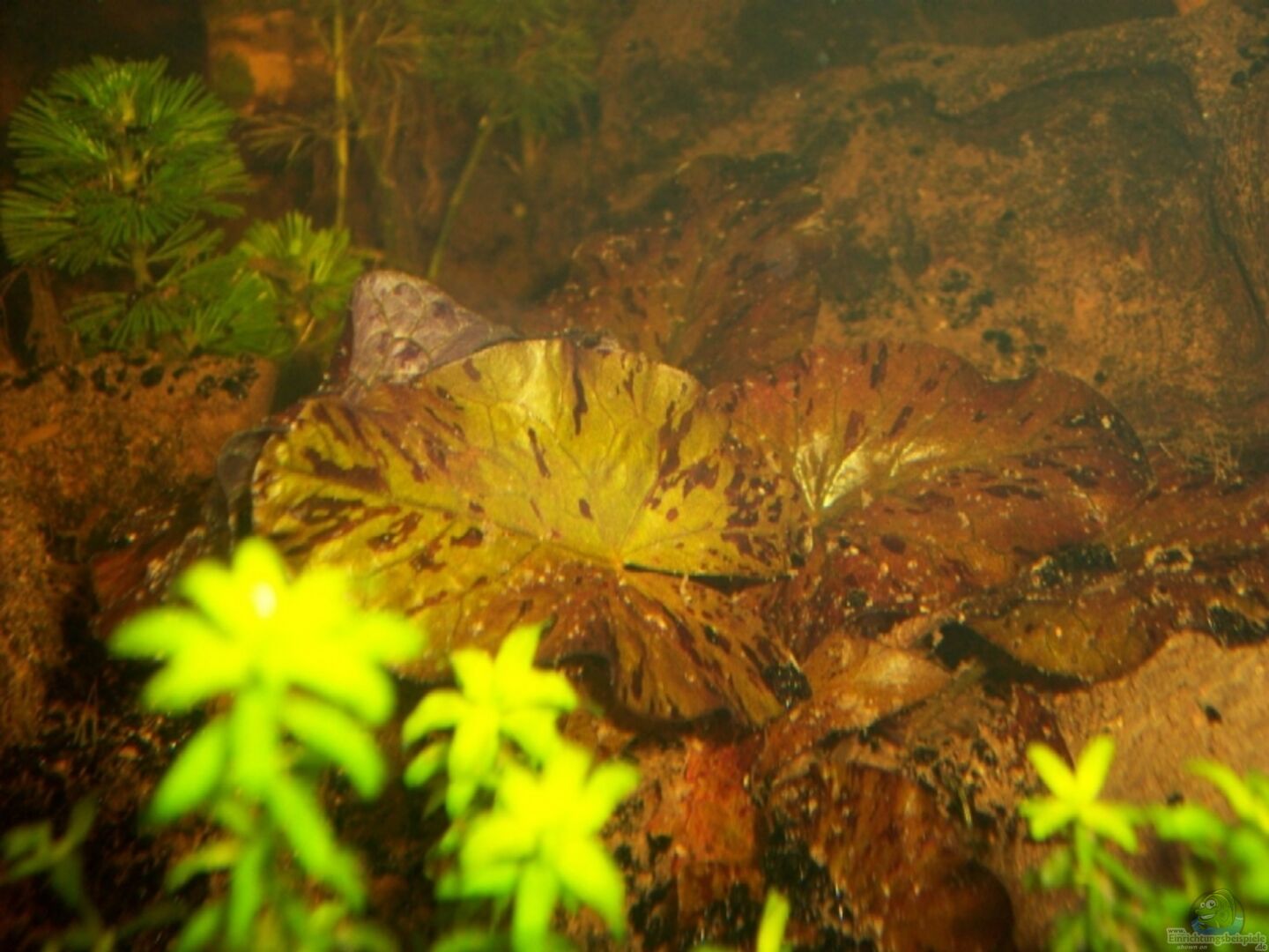 5 Vallisneria Giganta 15 Vallisneria Spiralis (haben aber viele Blätter abgeworfen und sind braun geworden) 10 Echinodorus Bleheri 5 Cabomba Carolina 10 Echinodorus Tennelus (aber sind bei jetzt schon höher als die angegebenen 8 cm...) 5 kubanisches Perlkraut 3 Matten mit Teichlebermoos 1 Knolle roter Tigerlotus (muss noch wachsen) Düngung: täglich Easy Carbo, 1x wöchentlich Easy ProVito