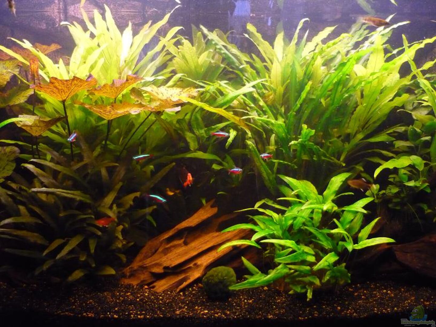 Mangrovenwurzeln mit Anubias barteri bestückt Verschiedene Wasserkelchsorten 1 Wasserähre Riesenwasserfreund Roter und grüner Tigerlotus Hätte gerne rote Pflanzen im Aquarium, aber die werden von jemandem an oder abgebissen ?