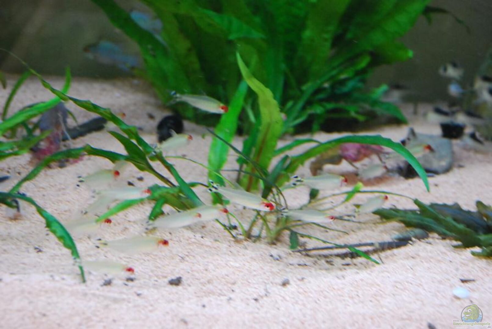 12 Diskusbuntbarsche in verschiedenen Farbschlägen. 15 Sterbai - Panzerwelse, 8 Adolfi - Panzerwelse, 5 Schmetterlingsbuntbarsche "Electic blue", 18 Rotkopfsalmler, 2 L - Welse - L177 und L330, 5 Riesen - Fächergarnelen, unzählige Glasgarnelen ( super Putzkolonne ), jede Menge Schnecken - Rennschnecken, Raubschnecken und Turmdeckelschnecken.