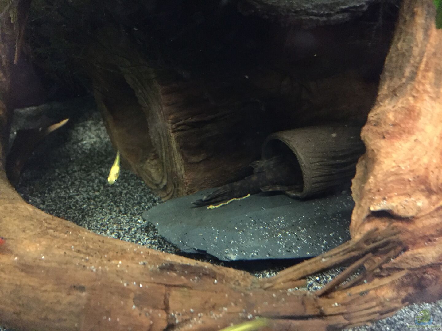 Der Besatz setzt sich wie folgt zusammen: 4 Panoqolus sp. L397 (Geschlecht unbekannt): Meiner Meinung nach einer der schönsten Welse, die es gibt. Leider konnte ich sie noch nicht zur Zucht animieren, aber ich bleibe flei??ig dran. Dieser Wels ernährt sich bei mir fast vollkommen von den Holzwurzeln. Nur alle Schaltjahre sehe ich mal einen an den Futtertabletten nuckeln. Ansonsten sind die Welse recht scheu und tagsüber nur in ihren Höhlen zu finden. Nachts geht dann aber die Post ab. 2w/1m [...]