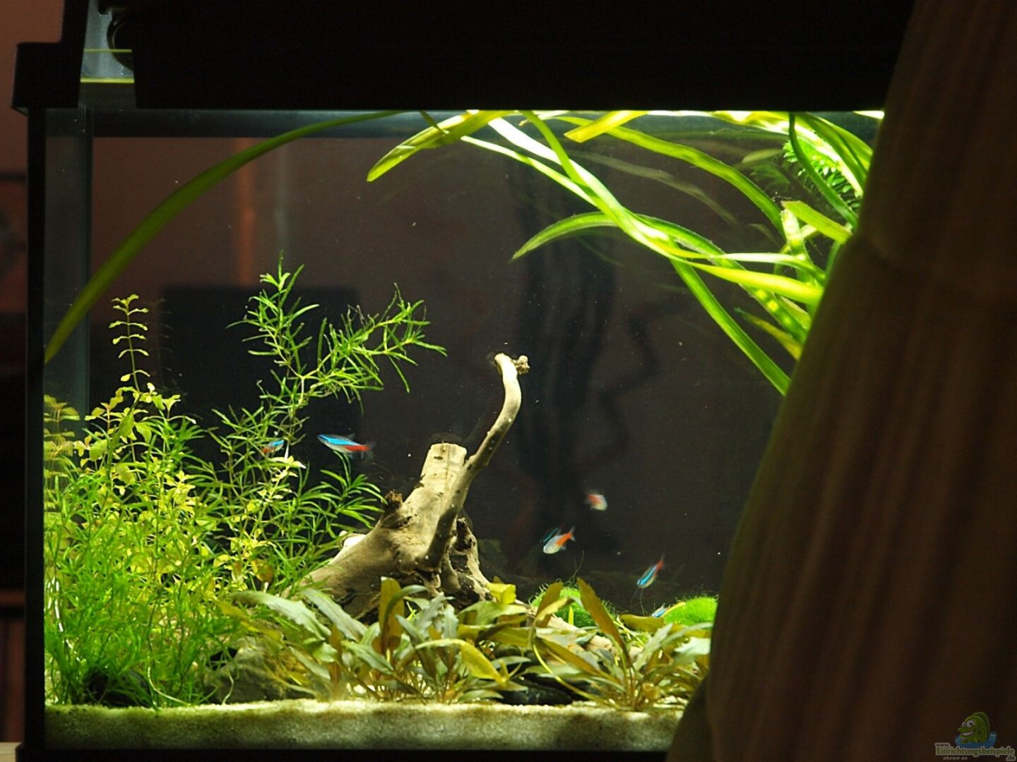 Unser erstes Becken. Komplettset MP Aquapro 60 stehend auf 2mm Thermomatte. Lange beim Hornbach drum herum geschlichen und dann irgendwann einfach mal mitgenommen. Eigentlich sollte es zuerst der Aufzucht von Urzeitkrebsen dienen, aber hierfür läuft nun seit ca. 3 Wochen ein kleines 30er Becken ein.