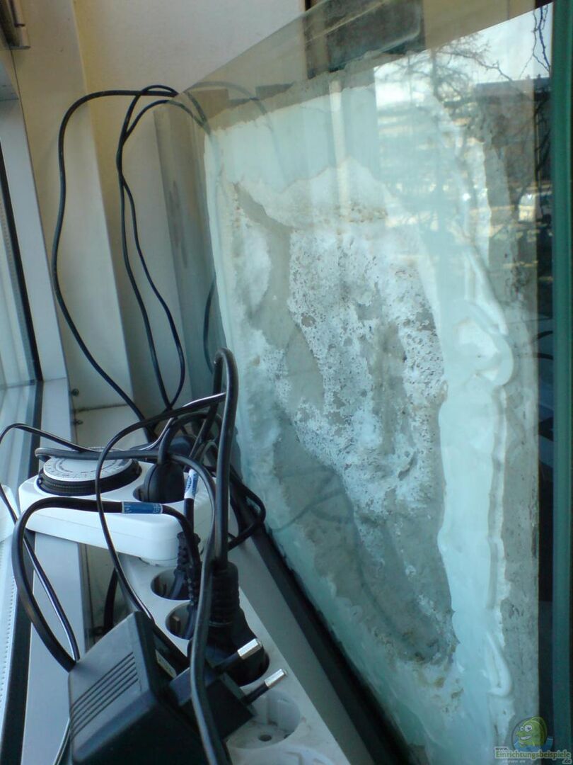 ca. 80 Schneckenhäuser (Weinbergschnecken aus dem Lebensmittelfachgeschäft) Die Betonrückwand habe ich weder farblich behandelt noch versiegelt, da auf ihr mit Sicherheit eine Menge Algen wachsen werden und Beton alkalisch ist, was den Wasserwerten nicht nur nicht schadet, sondern eher noch gut tut. Die Wand wurde auf einem Styroporträger mit Beton (1:3) modelliert und anschlie??end mit Zement sowie Sand bestreut. Das Styropor wurde ganz oder zu einem gro??en Teil geschmolzen und entfernt. [...]