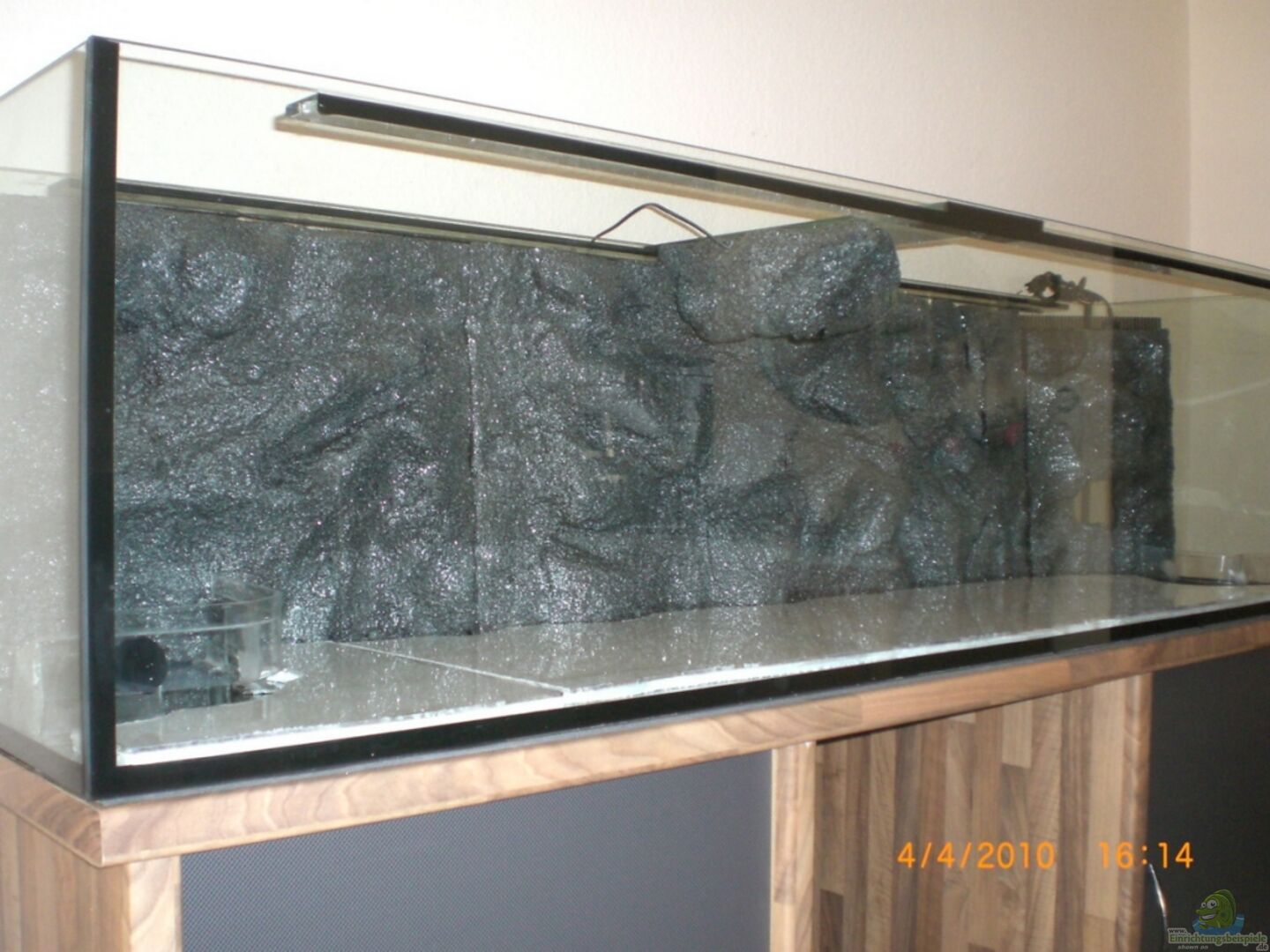 - Rückwand Eigenbau (Styropor + Graniteffektfarbe + Epoxidharz) - ??berhangfelsen, Eigenbau wie Rückwand, mit integrierter Strömungspumpe - Steinaufbauten, ca. 100 kg Ravensburger Sandstein, anthrazitfarben mit wei??en Einschlüssen