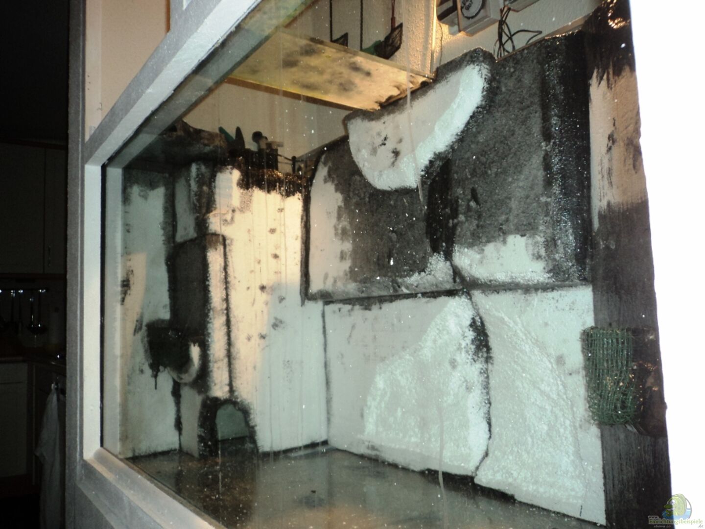 Erst mal zu dem Felsen. Der Felsen ist aus 5 Tonröhren gebaut und steht auf einer 1, 5 cm dicken Plexiglasplatte. Die Ma??e sind b. ca. 40 cm x 40 cm, h. ca. 45 cm. Der Felsen ist mit Aquariumsilikon zusammen geklebt, dann mit Fliesenkleber überzogen. Für die Befestigung der Pflanzen habe ich Edelstahlband mit eingearbeitet wo denn die Pflanzen mit Angelschur festgebunden werden. Der Felsen ist dann mit 3 Schichten Epoxidharz versiegelt. In der Reinfolge hellgrau ??? dunkelgrau & schwarz. [...]