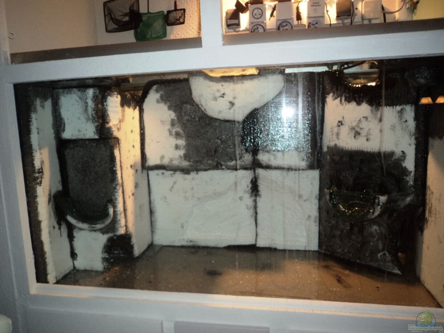Erst mal zu dem Felsen. Der Felsen ist aus 5 Tonröhren gebaut und steht auf einer 1, 5 cm dicken Plexiglasplatte. Die Ma??e sind b. ca. 40 cm x 40 cm, h. ca. 45 cm. Der Felsen ist mit Aquariumsilikon zusammen geklebt, dann mit Fliesenkleber überzogen. Für die Befestigung der Pflanzen habe ich Edelstahlband mit eingearbeitet wo denn die Pflanzen mit Angelschur festgebunden werden. Der Felsen ist dann mit 3 Schichten Epoxidharz versiegelt. In der Reinfolge hellgrau ??? dunkelgrau & schwarz. [...]