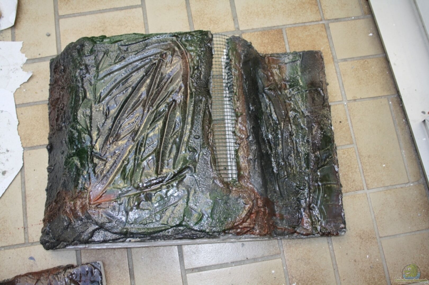 Rückwand und Seitenteile Marken Eigenbau 150kg ´Nero Ebano´ anthrazitfarbener Marmorbruchstein Die Rückwand und die Seitenteile wurden so gemacht, dass sie von den Fischen komplett hinterschwommen werden können. Zwei seperate Steinaufbauten links und rechts, sowie die bei den Innenfiltern und Seitenwänden geräumig hinterschwimmbare Rückwand erleichtern die Revierbildung unter Streithähnen und bilden Rückzugsmöglichkeiten. Für den Bau der Rückwand habe ich handelsübliches [...]