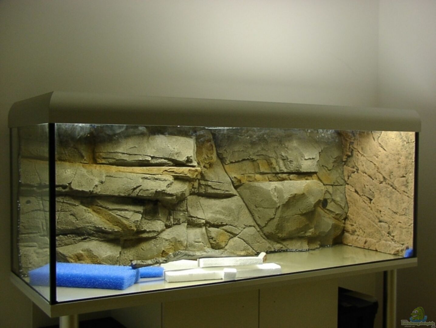 Rückwand "Rocky III" von Pangea. Die rechte Seitenscheibe wurde mit einer an das Rückwandprofil angepa??ten Back-to-Nature Rückwand "Slimline" verkleidet.