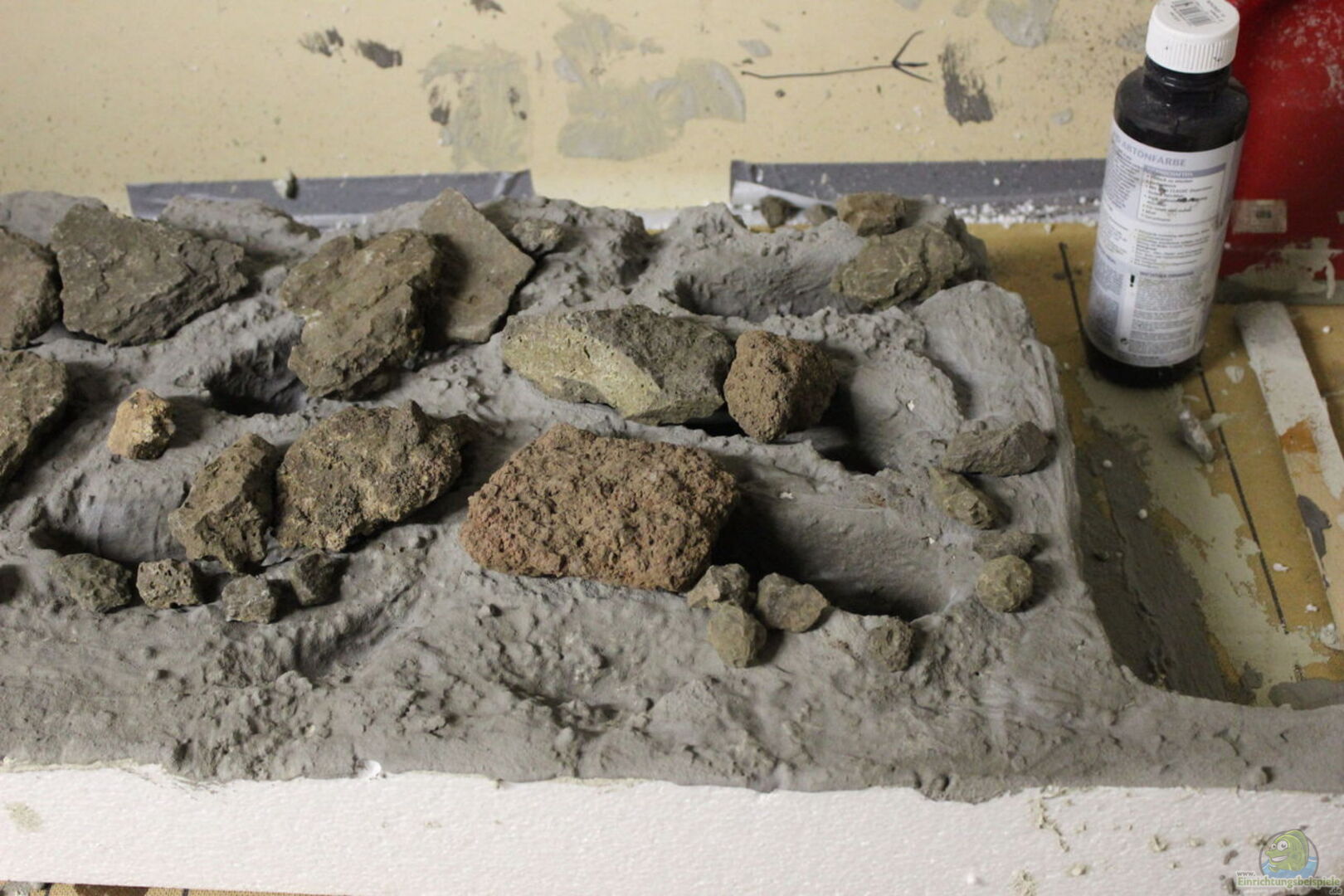 Die selbstgemachte Rückenwand stellt wieder mal den wichtigsten Einrichtungsgegenstand dar. Steine wurden in der Buckligen Welt gesammelt und zum Auto geschleppt. Die Rückwand wurde zuerst aus Styropor zurechtgeschnitzt, anschlie??end mit Fliesenkleber bearbeitet, die Steine wurden zurecht geklopft bzw. es wurde aus kleineren Brocken Steinmehl mittels Vorschlaghammer erzeugt, Steine wurden mit Fliesenkleber angeklebt, anschlie??end mit Farbe "verschönert" und zu allerletzt auch noch [...]